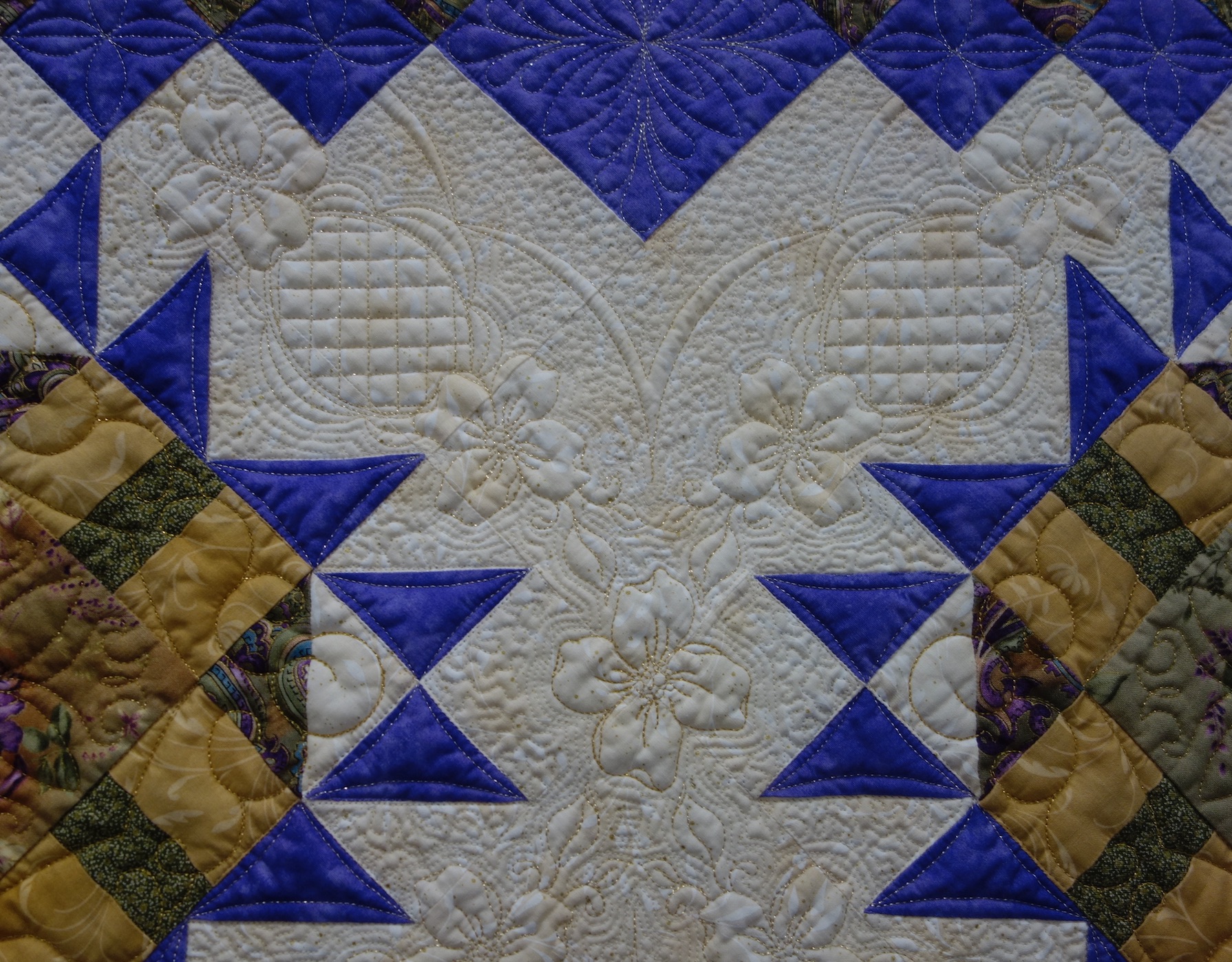 Every once in a while a "simple" traditional-style quilt just knocks our socks off. This is one of the quilts. Memories of Hailey, by Sharyl Schlieckau of Loganville, WI, uses repeated blocks on point and absolutely stunning quilting to fill the blank spaces.