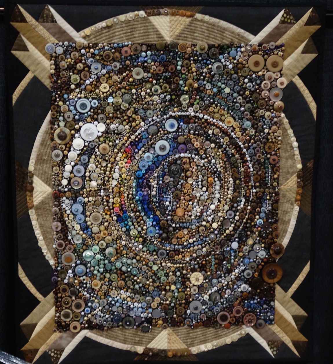 She conveys this impression by using a multitude of beads and buttons for a striking result. How many do you think she used?