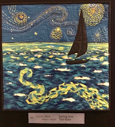 One of the highlights of the Sisters Outdoor Quilt Show was the Cherrywood Van Gogh Exhibit. Each year for the last four years, Cherrywood Fabrics has issued a challenge to any quilter who is game, to create a quilt based on the year's theme. As a quilter you must purchase a bundle of the chosen fabrics and create a quilt that is 20 x 20 inches. At least 75% of the quilt must include the chosen fabric bundle but the remaining fabrics can include other colors as long as they are Cherrywood Fabrics. Three jurors studied all the entries...and, I can't imagine how difficult their job must have been!!! There were a total of 465 entries! With this overwhelming response they decided to create 2 traveling shows. The first was the French Van Gogh exhibit with 120 quilts and the second is the Dutch Van Gogh with 80 quilts. The French Van Gogh exhibit was displayed at the Sisters Outdoor Quilt Show and was an overwhelming hit!!! After leaving Sisters it was heading to France where it will be displayed for 2 months at the BOHIN Factory.