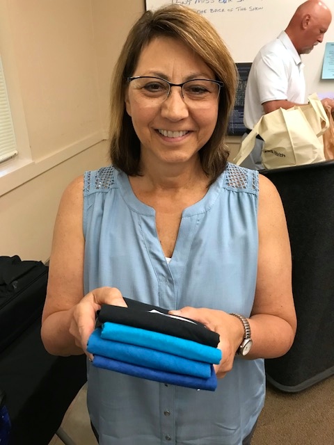 Donna, the show coordinator, is displaying the Van Gogh Fabric pack.