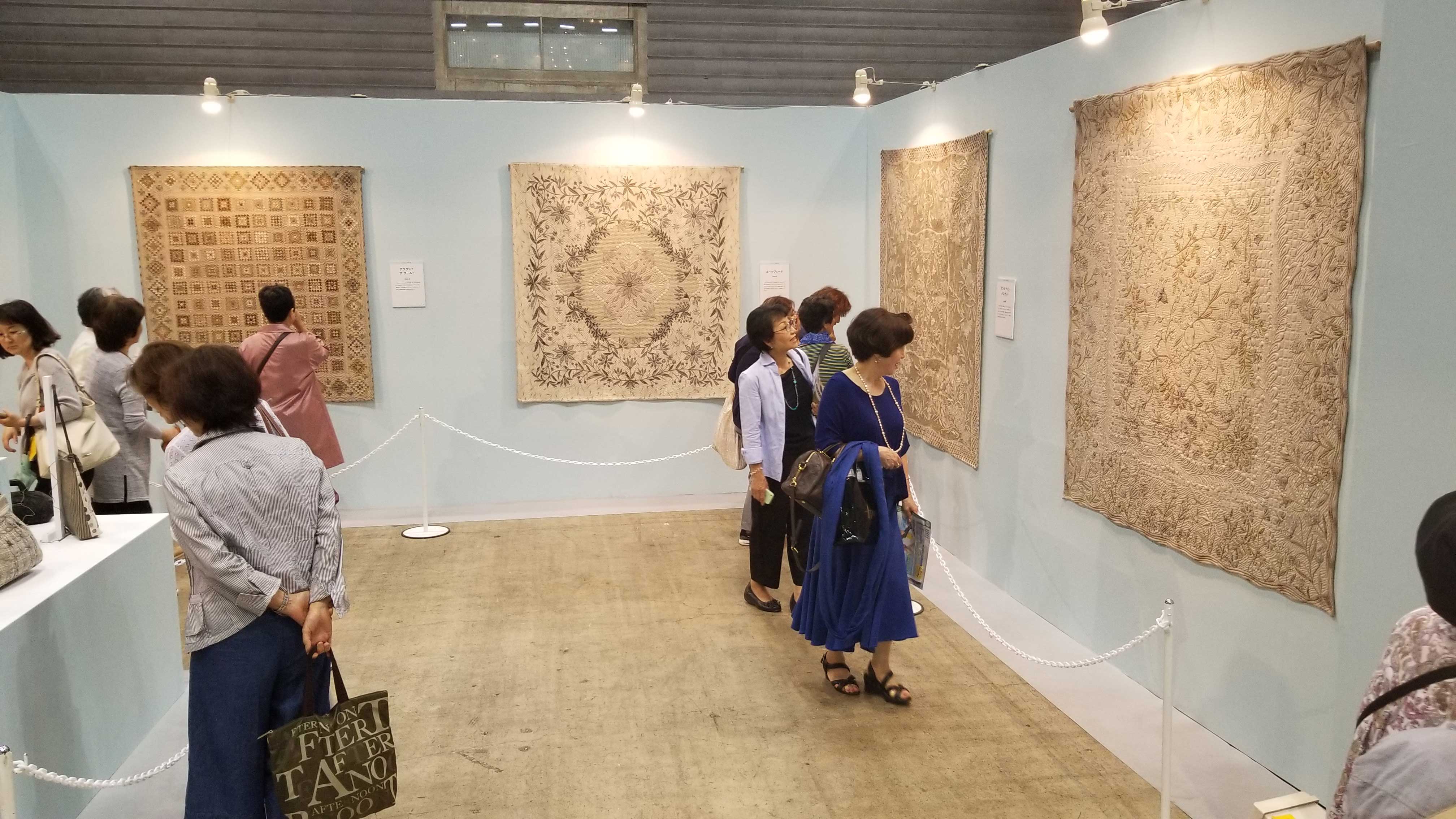 Many of Japan’s well known quilt masters held exhibitions. Yoko Saito (Show 1505) has a large display that was constantly filled with quilters seeking a closer look at her stunning, folkloric quilts.