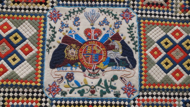 Just a little peek at the Mosaic Quilt, which is currently on display at the International Quilt Study Center & Museum in Nebraska as part of the War and Pieced: The Annette Gero Collection of Quilts from Military Fabrics exhibit. Click on See the Zoom Quilt to see the entire quilt.
