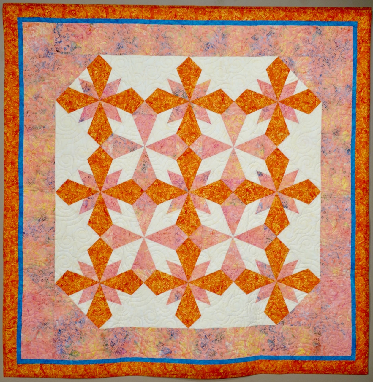 Ebony dials a traditional kaleidoscope block "up a notch" with her use of bright color.