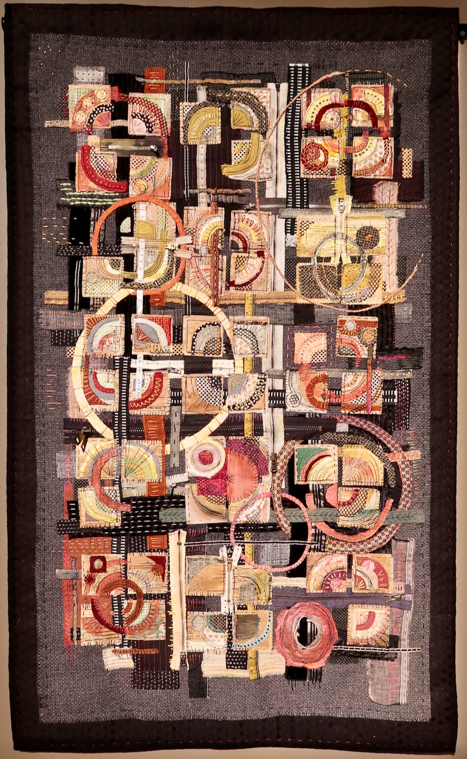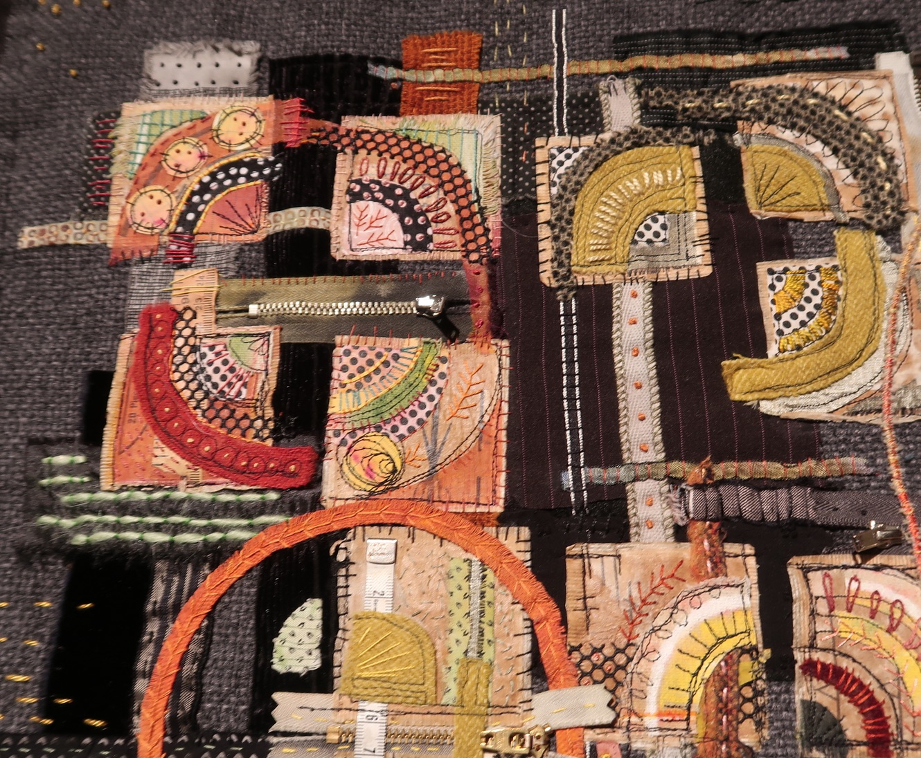 Well, this "hoarder" makes fabulous quilts and we could spend hours pouring over the different stitches, objects, and layers she uses in her designs.