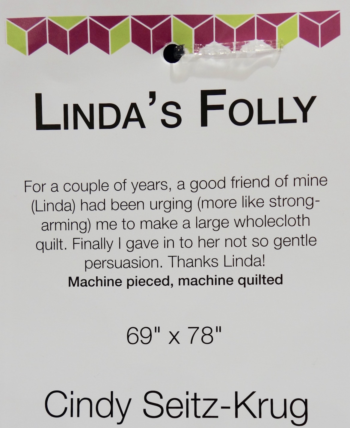 Cindy Seitz-Krug is well-known for her machine quilting, but did you know that she does all of her quilting on a BERNINA 440 QE? Cindy says that she was "strong armed" into making a wholecloth quilt, and Linda's Folly is the stunning result. Remember, you can do this at home on your machine as well...