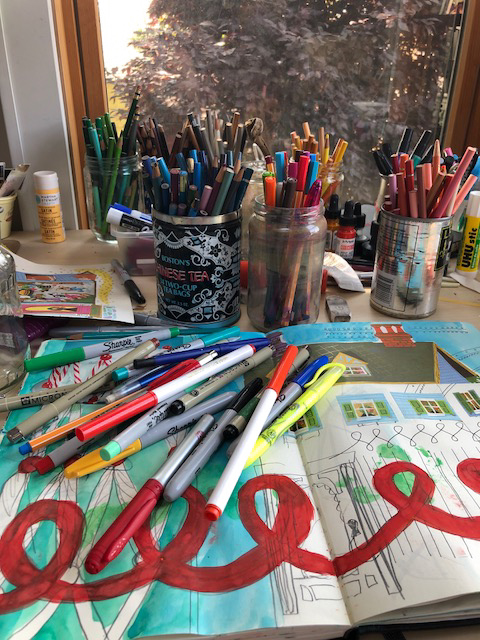 A lot happens in Rebecca Ringquist's studio. On one side of the studio she runs her business, Dropcloth Samplers, and on the other, she draws, sews, and embroiders her artwork. Here she gives a tour to WeAllSew.com.