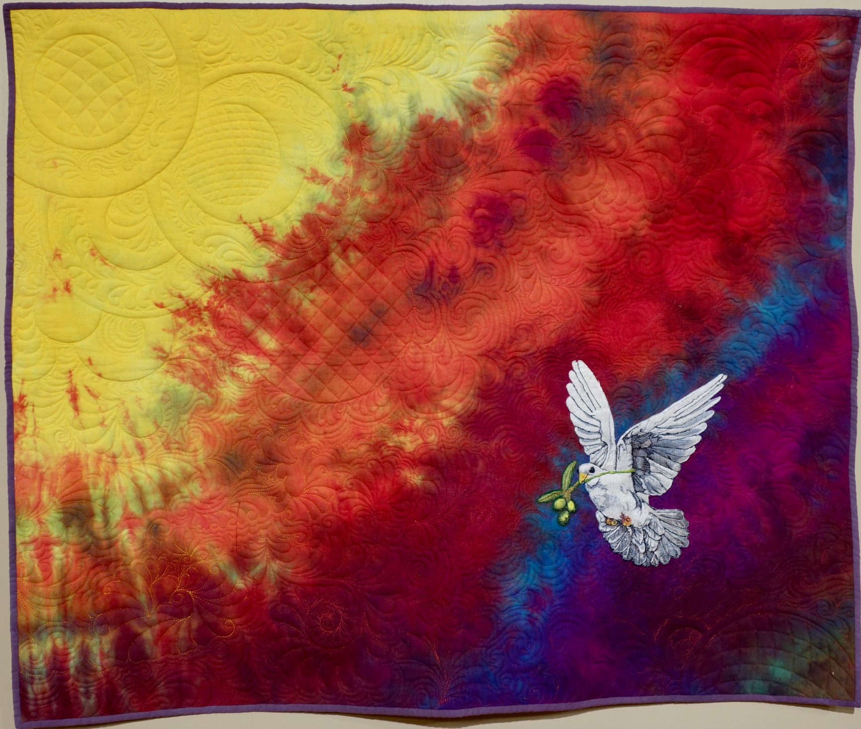 Fighting for Peace was created as a Quilts of Valor raffle quilt. After the loss of Jamie's quilts in Houston, the auction winner gifted the quilt back to Jamie. Aren't quilters wonderful?