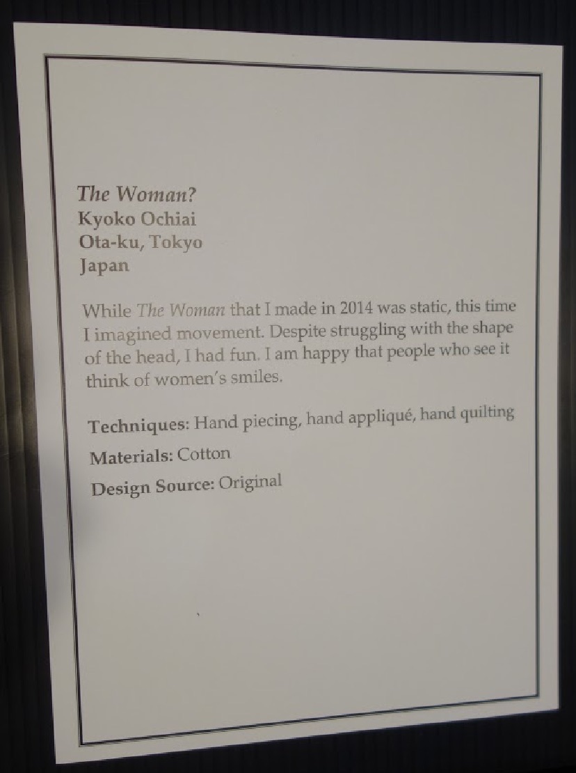 Kyoko Ochiai's quilt, The Woman?, is a study in the female form and a woman's wardrobe. Kyoko has said she'll be happy if the people who see it think of women's smiles. This quilt was part of the Innovative Pieced exhibit at Houston 2017.