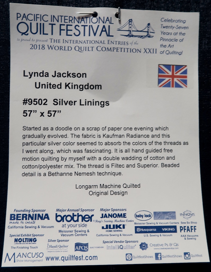 Silver Linings was on exhibit at the Pacific International Quilt Festival 2018.