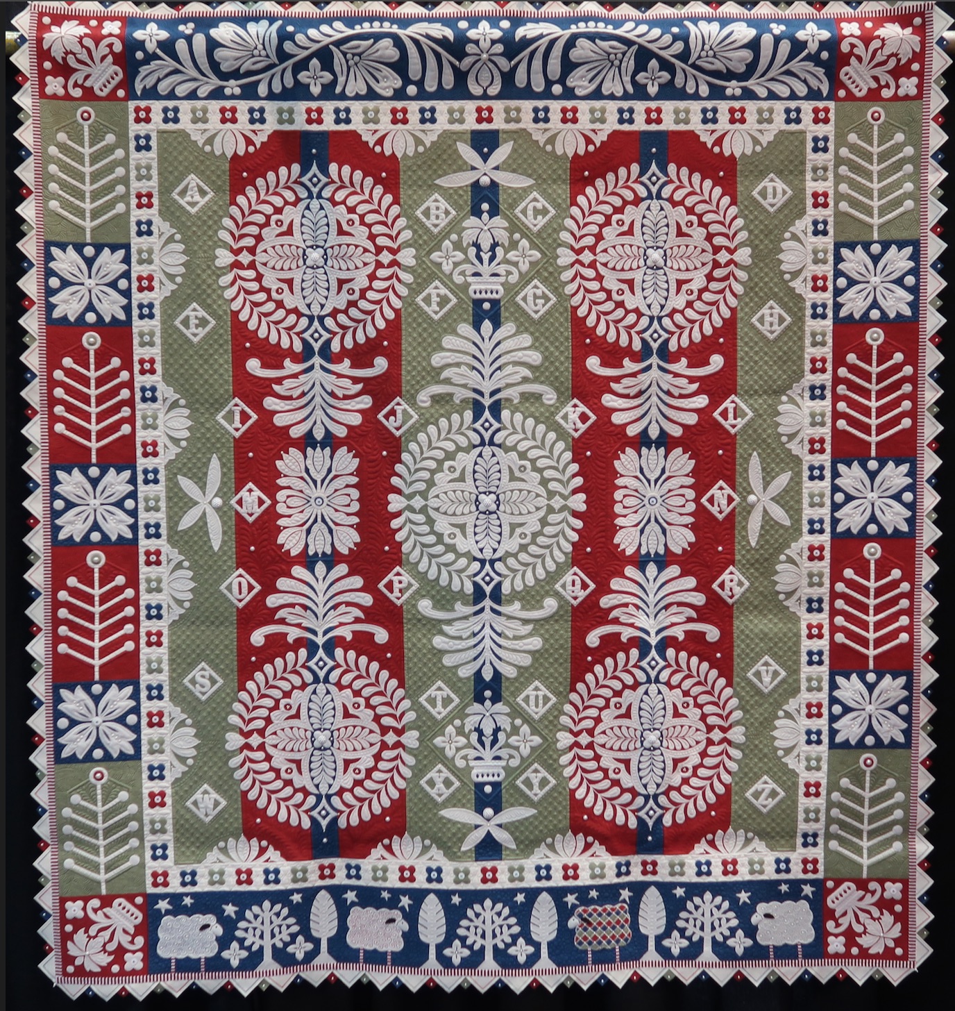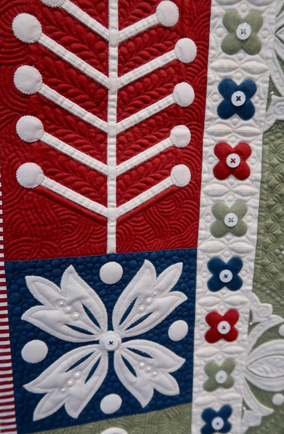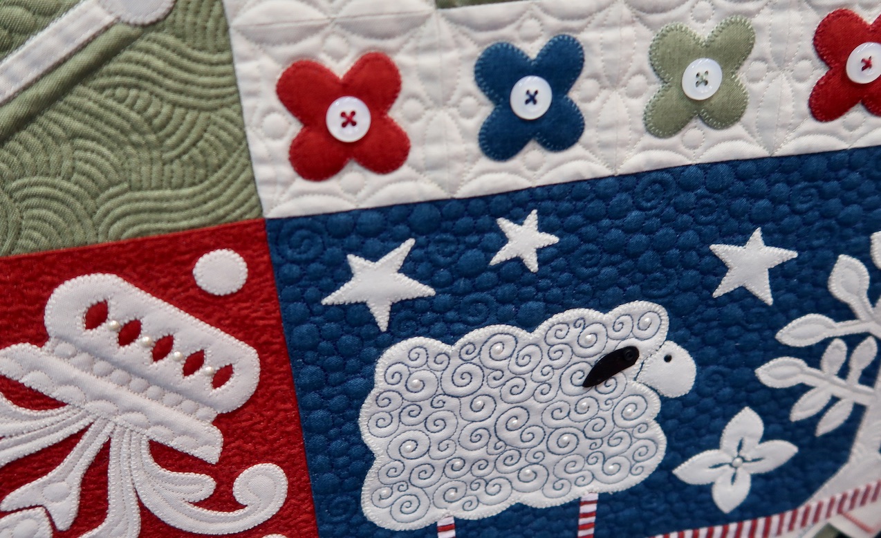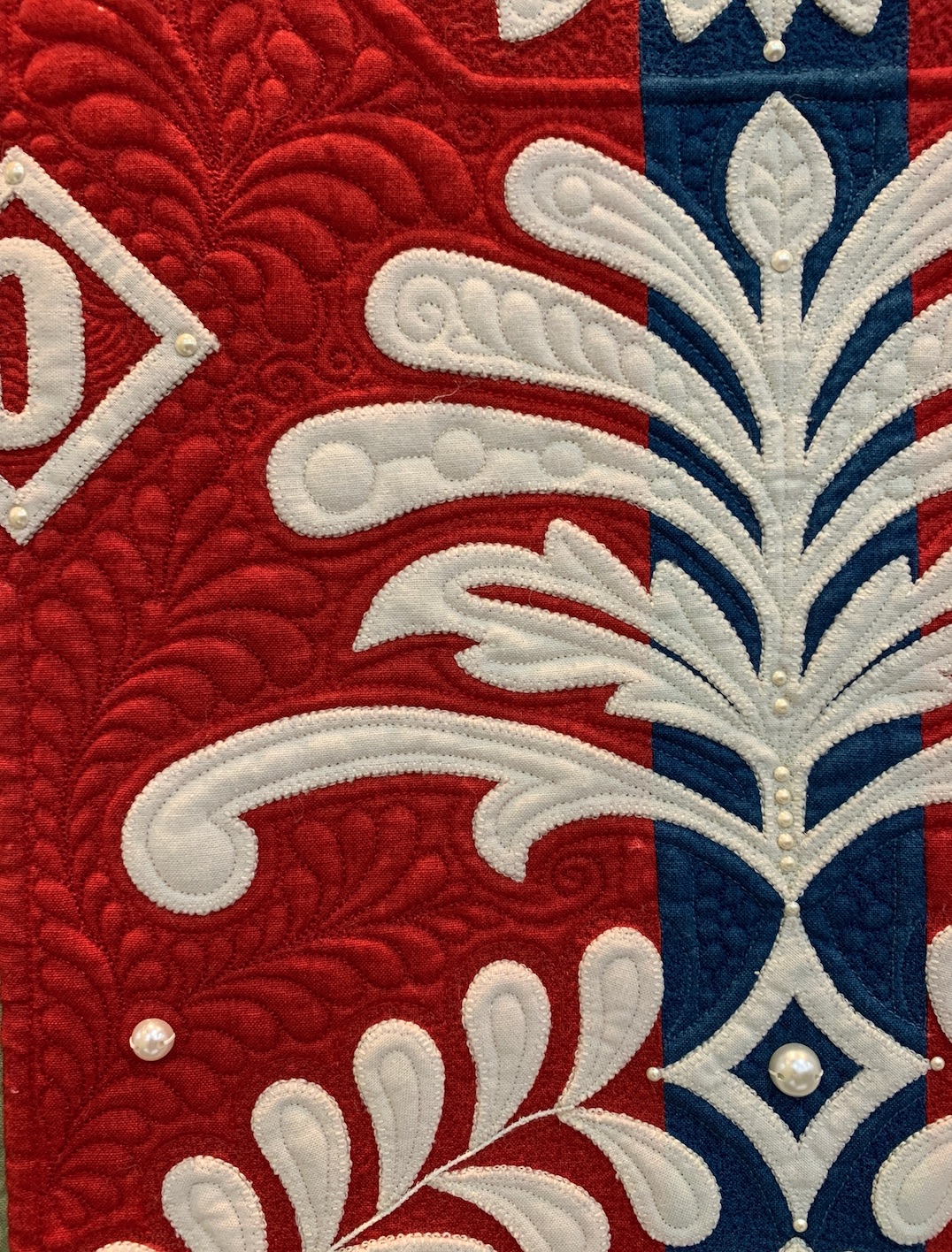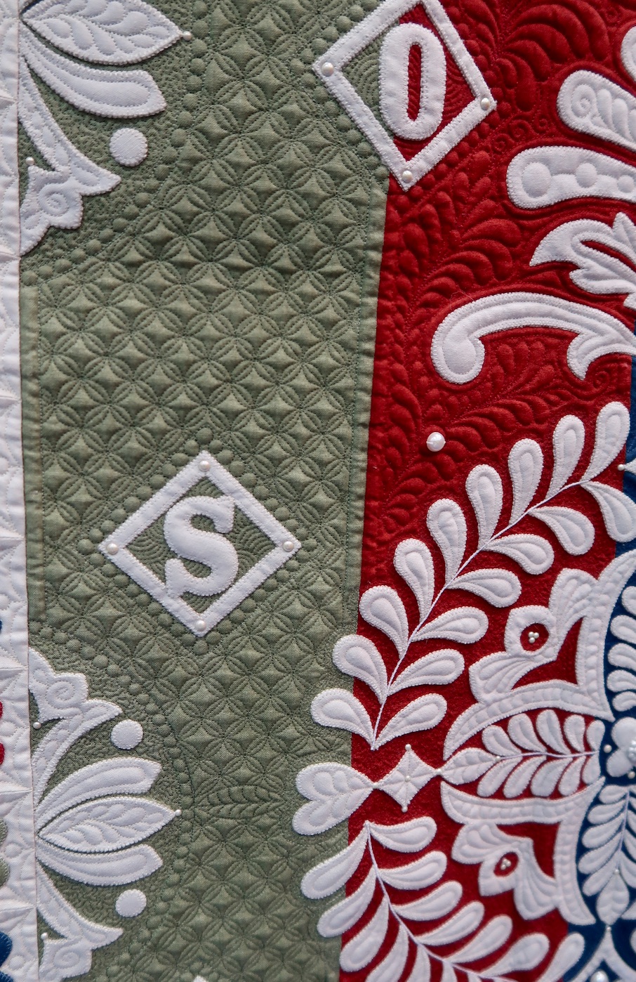 Muttons & Buttons & Pearls, Oh My! won Best Stationary Machine Quilting at AQS Lancaster 2019.