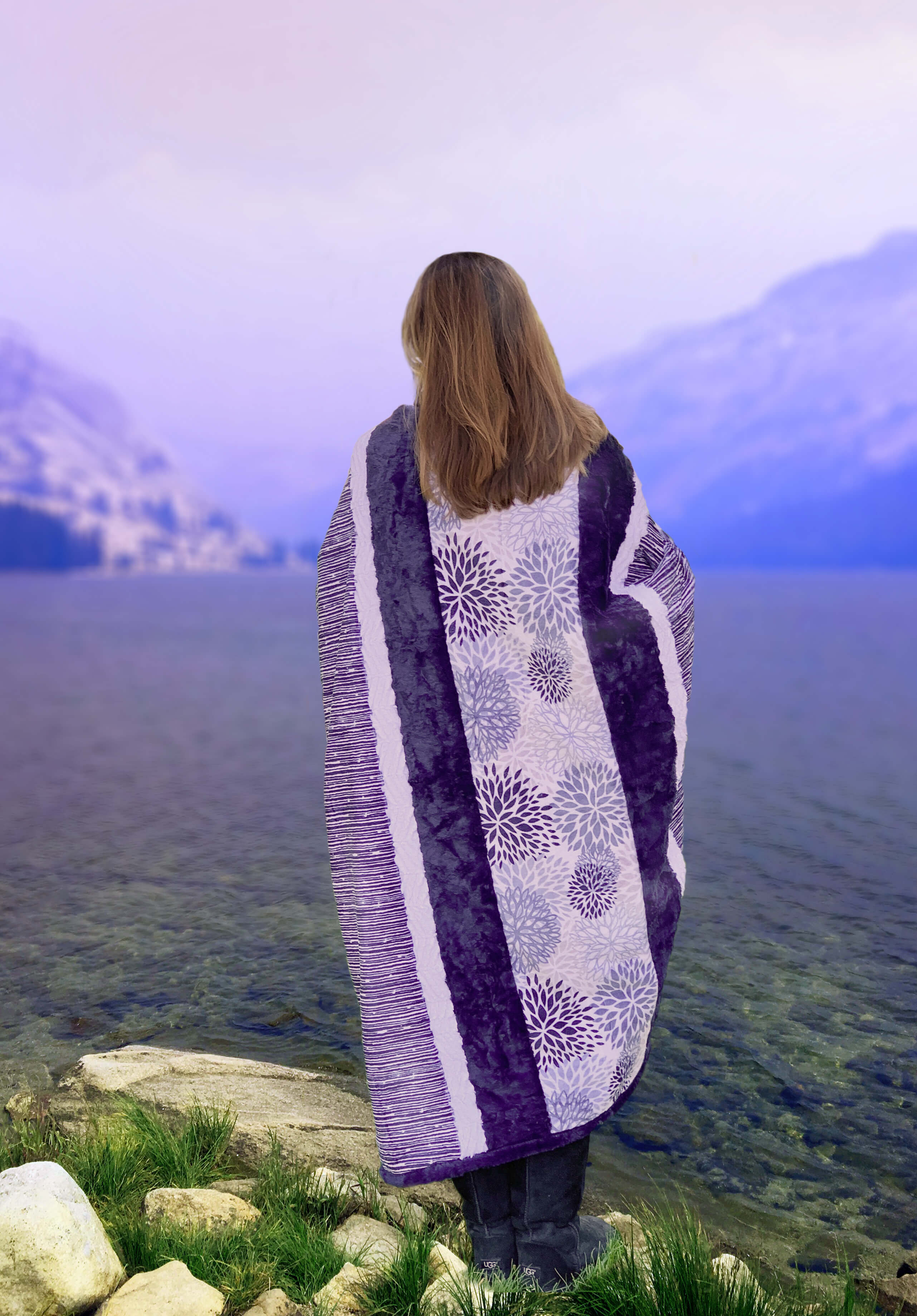 This blanket is both pretty and warm! It is very soft and squishy, and could be used both indoors and out. It is also quite large - definitely big enough to keep you warm whille you watch the big game or snuggle by a campfire.