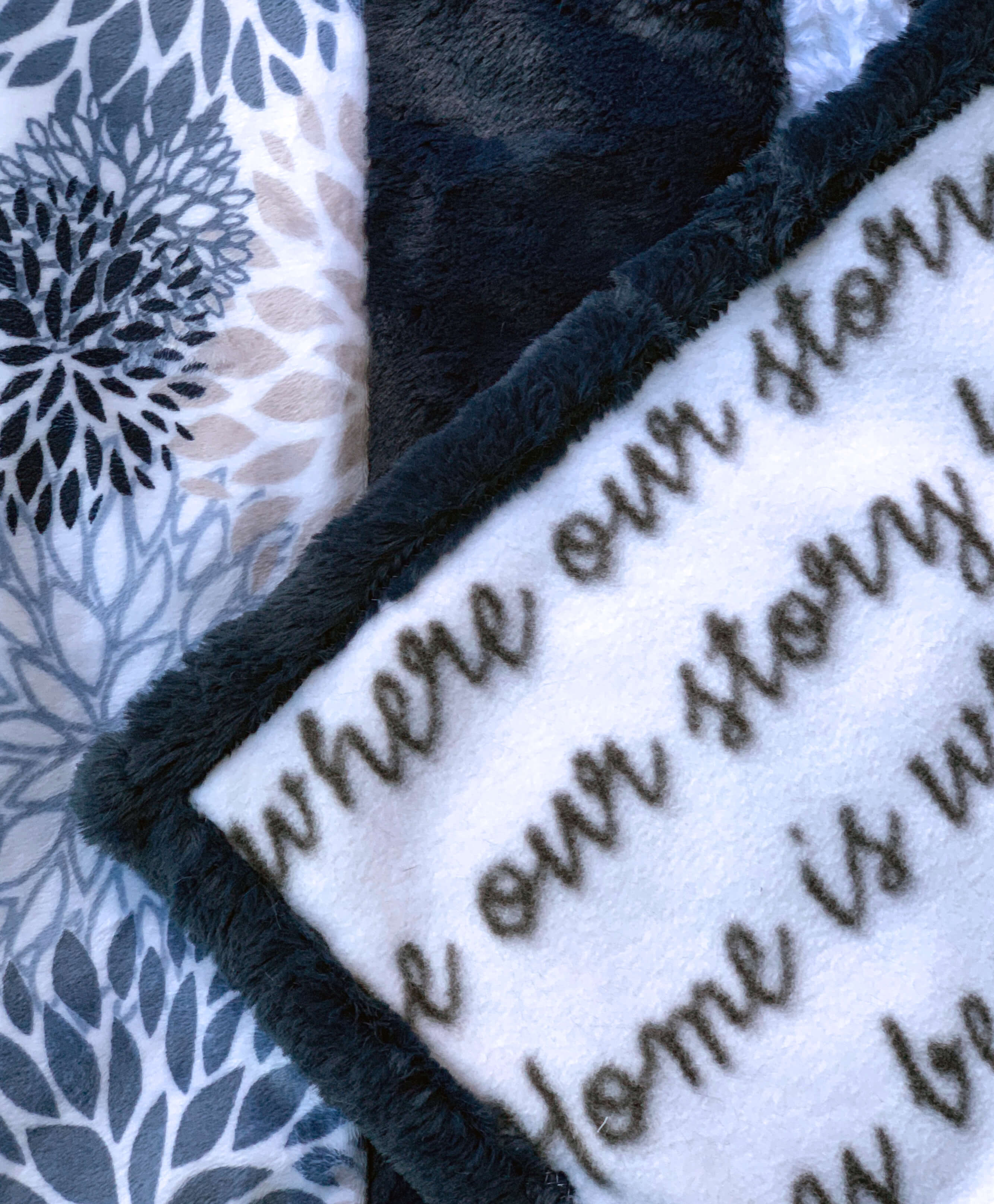 Moonlight Blues is an adult-sized kit that includes everything you need to make the blanket front. I had fun picking out a backing and considered lots of options that offered different levels of warmth, and ultimately chose polar fleece because it is low maintenance, easy to work with, and I knew it would be nice and toasty.