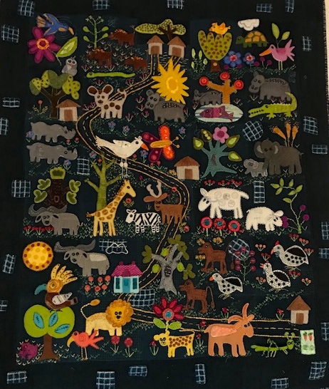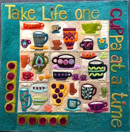 I am always looking for inspiration wherever I can...and as the universe was listening, I got an invitation to visit a local quilter. I was surprised to come face to face with my dream home when I was in my 40s...a beautiful, as in majestic beauty, log home. If you have ever dreamed of one of those log homes where the logs look liked they were dragged by draft horses and carved by craftsmen...well that is where this quilter lives and stitches. Terri Kirchart is a prolific stitcher, and I am always inspired by not only her stitching, but also by her ability to keep up on all her projects. Isn't that what we all need and want...a friend who inspires us to get moving on our stitch projects! Terri is a fan of Sue Spargo projects and is a quick learner when it comes to the stitches that Sue uses in her creations. I love having photos of her projects because I can use them as a reference for stitch combinations that I might want to use. I hope you will be inspired by her projects. Also you can get the kits or patterns on http://www.suespargo.com/index.php. Have a great stitching week and pay attention to what your stitching friends are up too...there might be inspiration there!