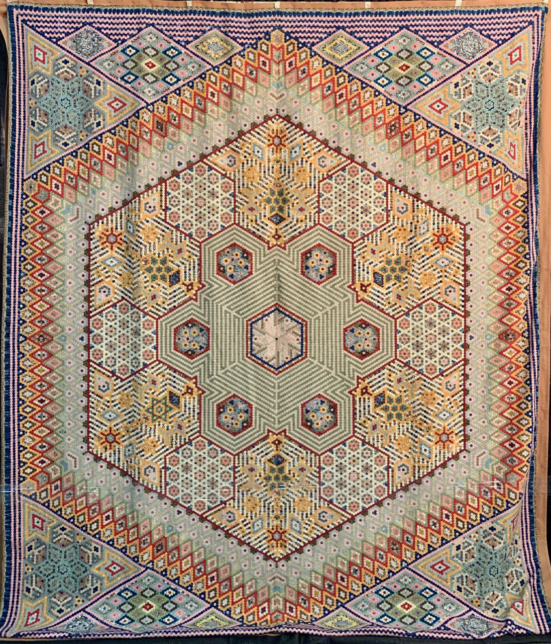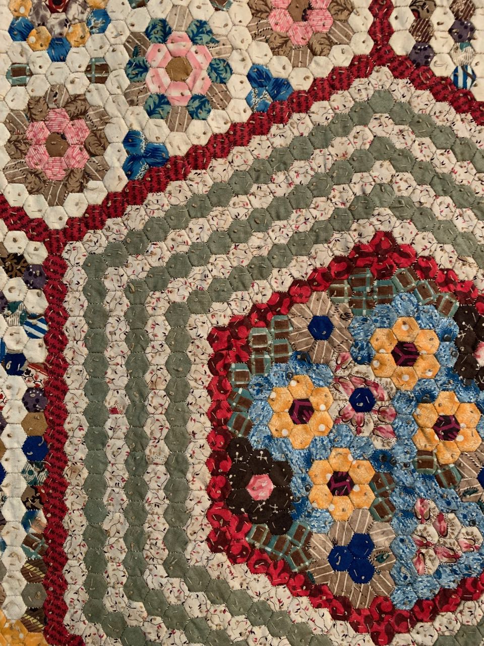 In the Antique Quilts of the British Isles exhibit at Houston 2018, this quilt was on the end and grabbed everyone's attention as they entered the Quilt Display side of the Convention Hall. Take a look at the closeups. The last picture is the BACK of the quilt.