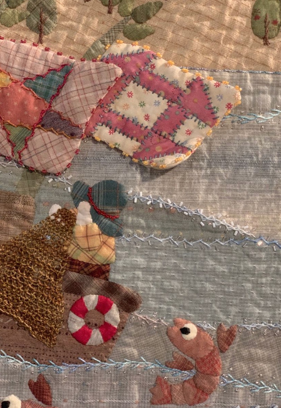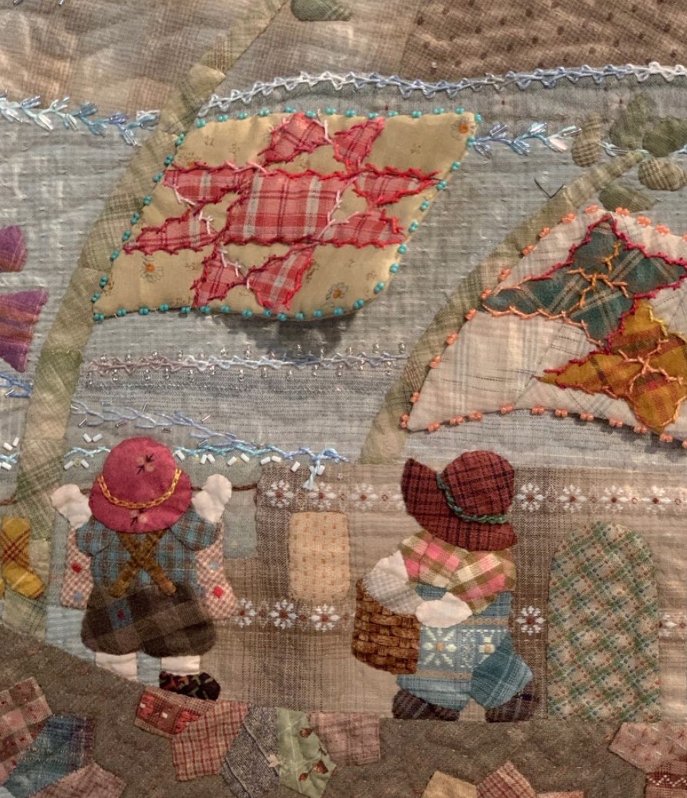 The appliqué work, details, and embroidery are exquisite. There is something to look at in every inch of this quilt.