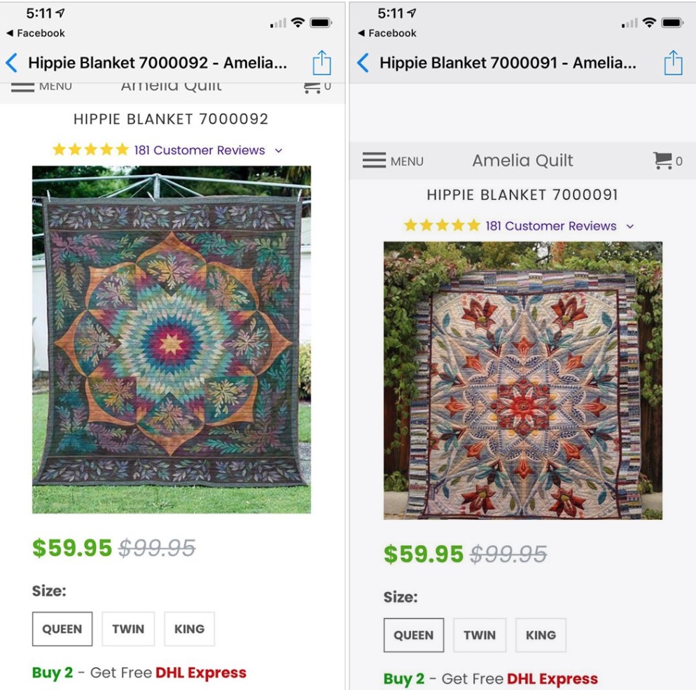 QUILTERS UNITE! PLEASE SHARE and help. Stolen! My Dad's Lone Star design and used on "hippie blanket" without license or permission. I could use help finding out who Amelia Quilt is - and how to contact them - and legal services. The second "blanket" popped up as "often purchased with" so I did the screen grab of it too - anyone recognize the original designer/maker? There may be others.