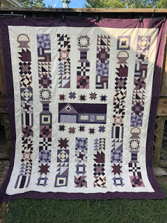 She also shares photos from the Sunday Sew and Sews, some of which feature different settings and designs. For example, Terri's quilt (right below) from the Sunday Sew and Sews, used the Patchwork Barn Crystal Farms Kit and enlarged the background. Donna's quilt (left below) created her own home in the center, and that's Barbara's top in the middle.
