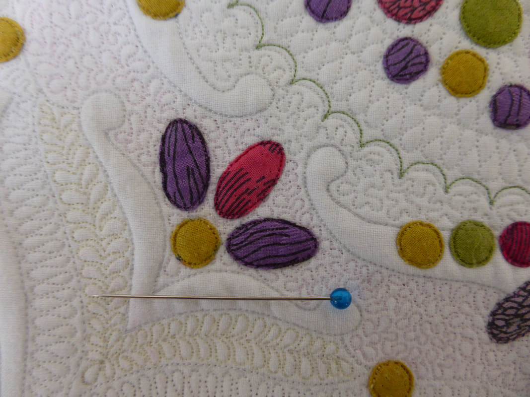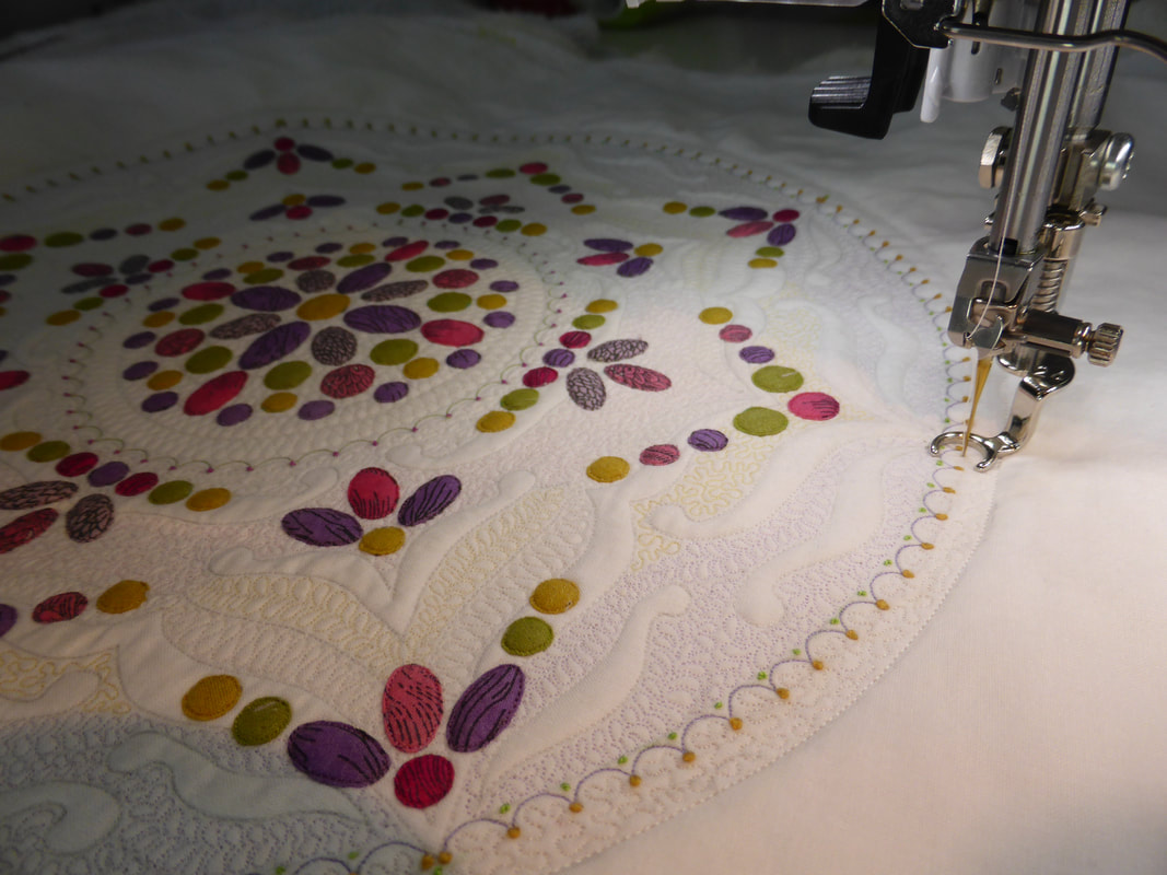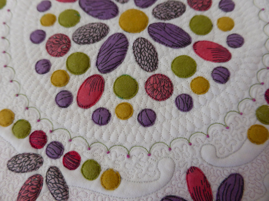 It was made using turned-edge appliqué. The smallest circle on the quilt is the size of a hole punch hole. To learn more about how the quilt was made, watch Alex's interview with Philippa.