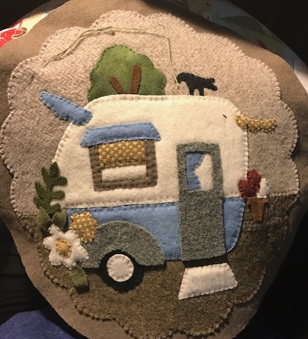 As we have been traveling down the road and I have been stitching away on a Buttermilk Basin pattern I wondered how I might make the pattern have a personal statement.
