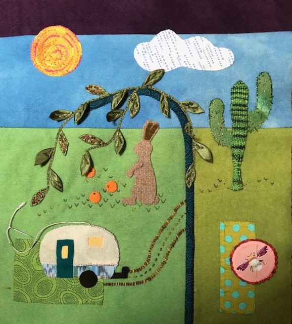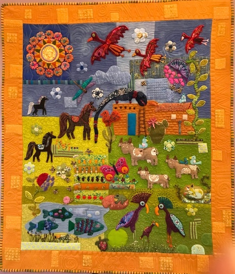 I was gobsmacked when I saw this quilt created by a fellow classmate, Ariane Zurcher. It is an amazing piece of folk art...but, what is really amazing is that she was inspired and started this quilt at a Sue Spargo workshop in Santa Fe in 2018! Yes...I am talking inspired, designed and stitched in less than a year!!! For a girl who has a pile of UFOs, this gave me chills...could I possibly become this passionate?