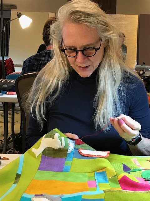 What I learned and will always cherish, is that a fellow classmate took the time to share the possibilities. I was in awe and continue to be in awe...she has been quilting for 3 years...yes, 3 years and the quilt she started with was a Kim McLean quilt. Because when you are passionate, you don't start with the ABCs, you write a novel! She has sold a quilt of her own design and yes...she is finished with the 2018 Homegrown Sue Spargo BOM...as in stitched, pieced, quilted and bound.