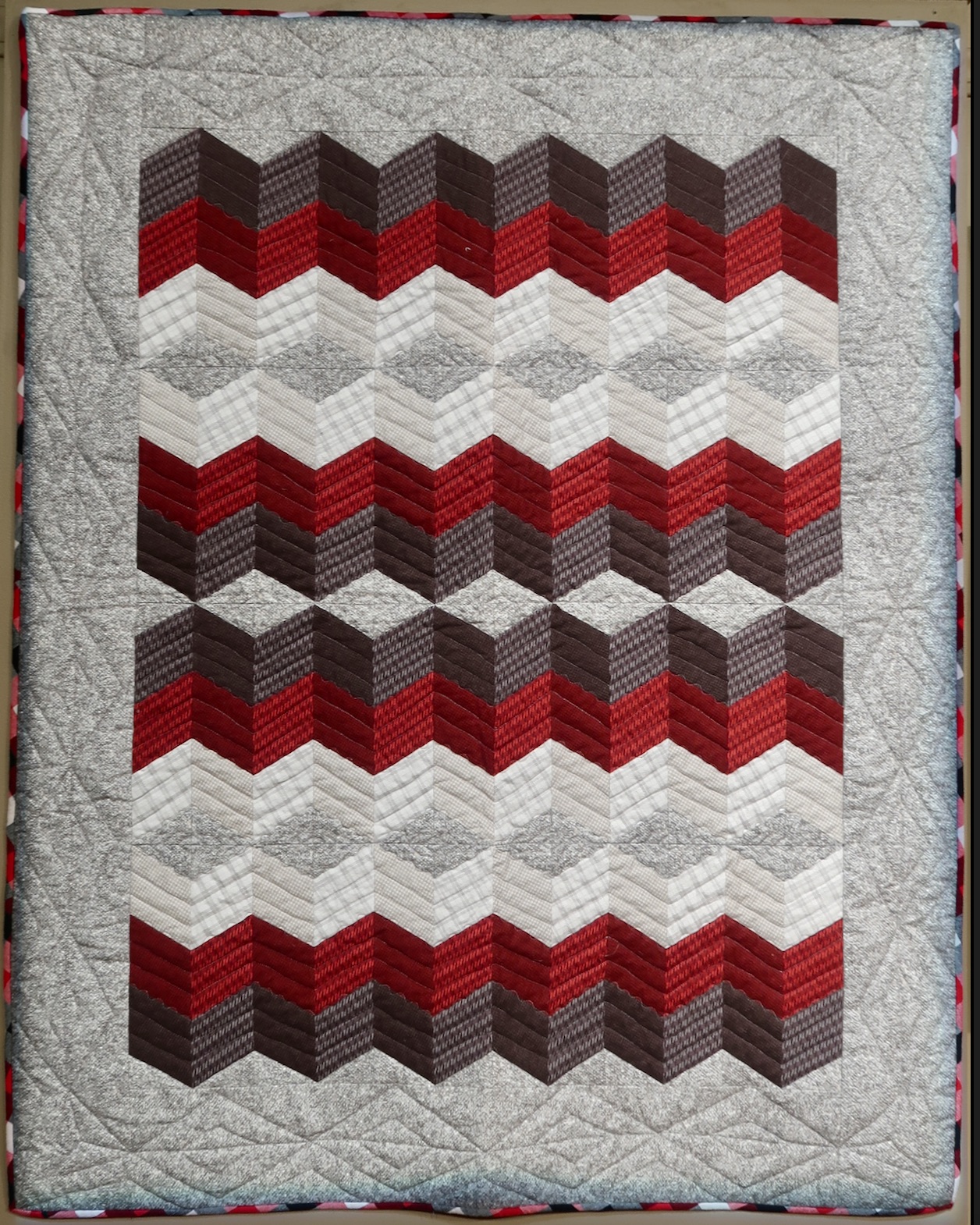 Don't Tread On Me is one of Marci's favorite quilts. It is a one-patch diamond that she strip pieced and "accidentally" ended up with a 3-D design. And did we mention it is flannel?