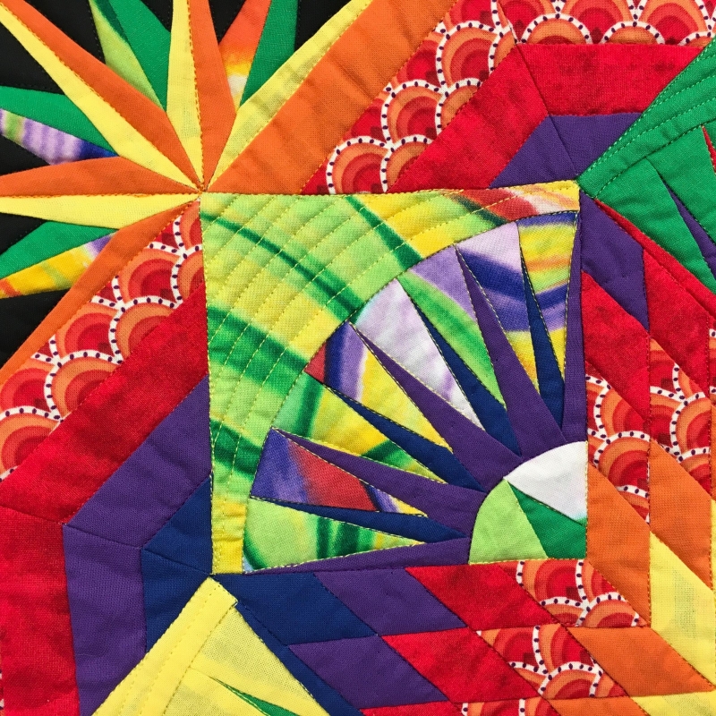 Rio Grande Valley Holidays reflects two of my loves. The first, my love for the spiral lone star from Jan Krentz’s “Lone Star Quilts & beyond”. The lone star is one of the symbols of Texas. The second, my love for my new home in Pharr Texas. Pharr is in the Rio Grande Valley. Our home is about 7 miles north of the border with Mexico. All our holidays have a strong Hispanic influence and are exuberantly celebrated with fireworks.