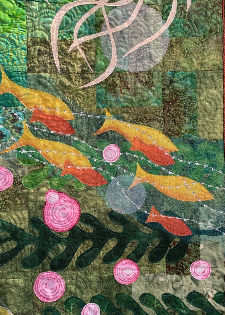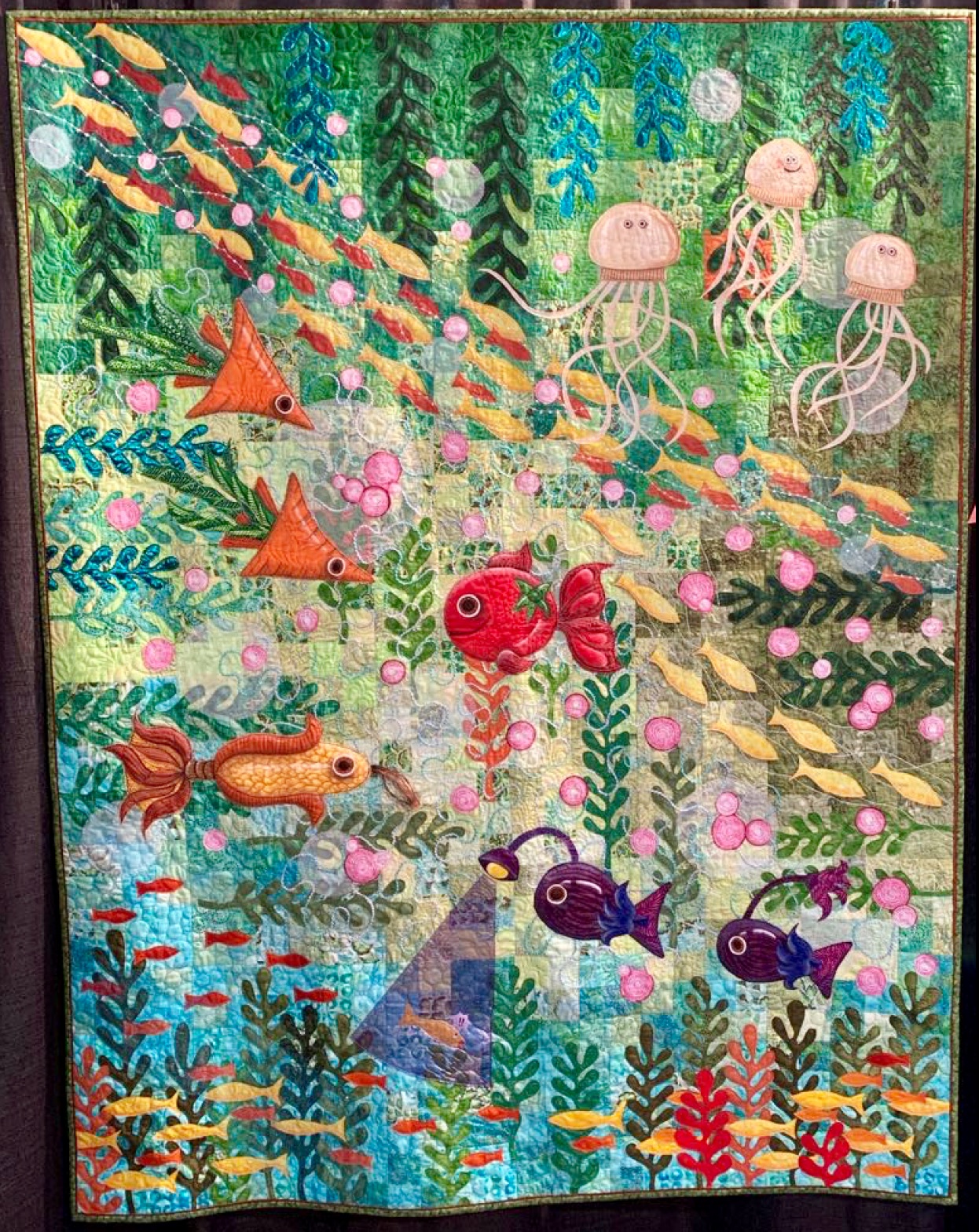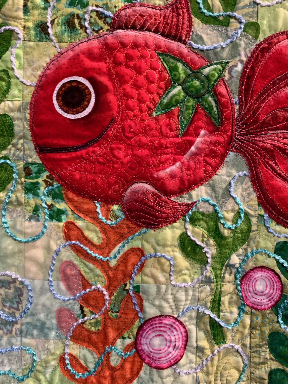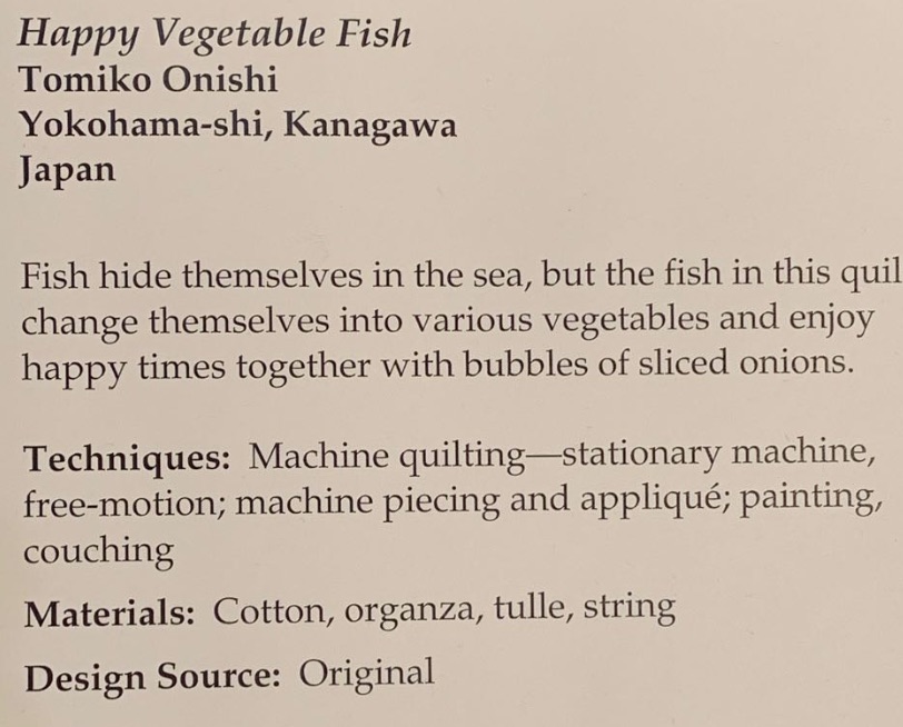 Happy Vegetable Fish won an Honorable Mention in the Fantasy/Whimsy category at the Houston International Quilt Festival 2018.