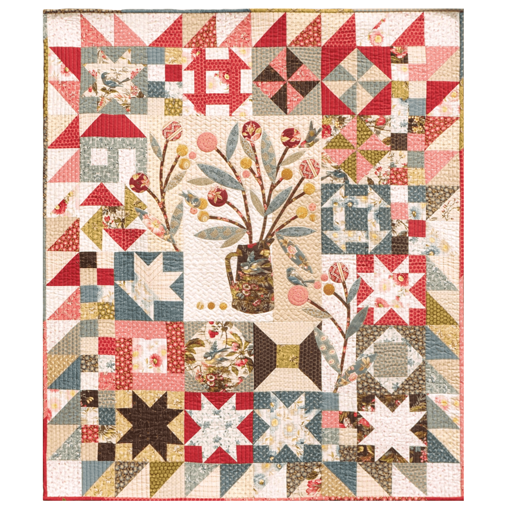 The Sequoia Sampler REMIX pattern offers a basic layout for the quilt top but leaves the choice of patterns and placement for the 18 six-inch blocks and the appliqué pieces to the maker, so that every quilt will be uniquely meaningful to its creator.