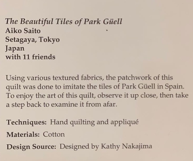 The Beautiful Tiles of Park Güell was on exhibit at the Houston International Quilt Festival 2018.