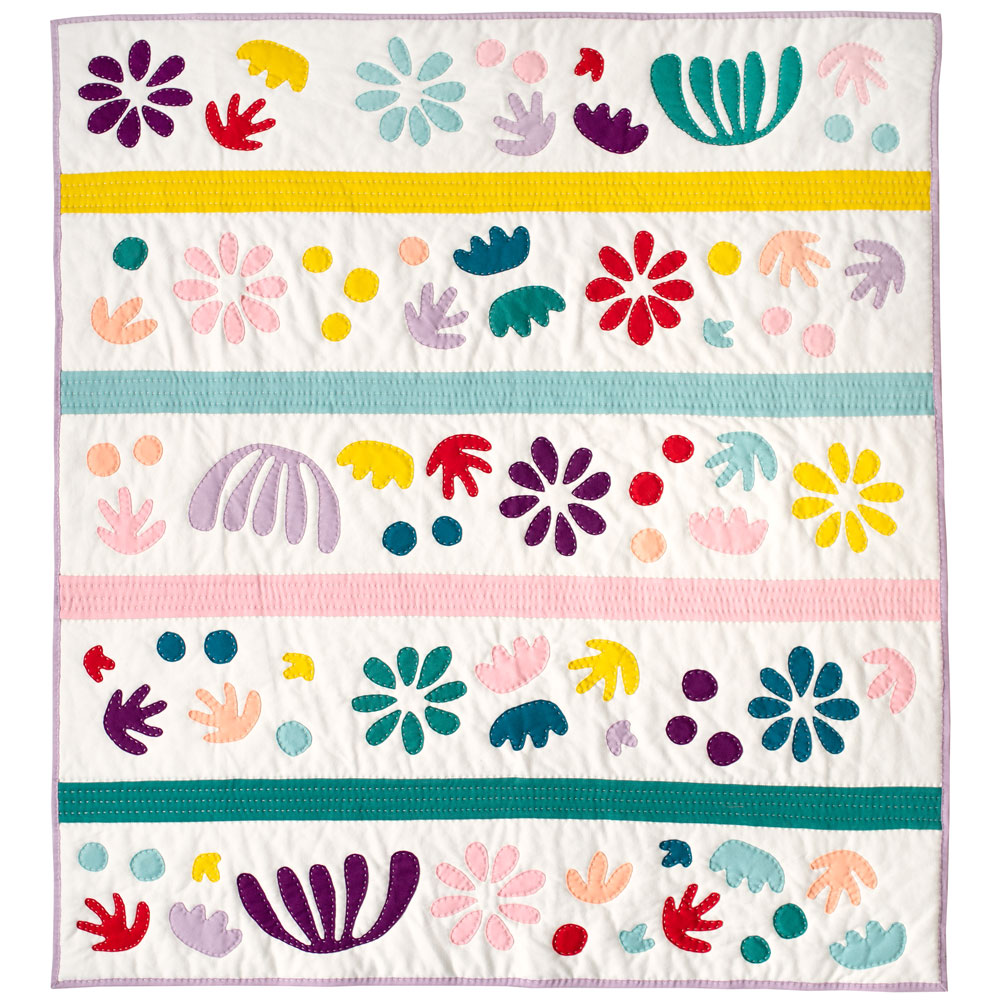 Suzy's quilt, Bohemian Garden, was made completely from knit fabrics. Yes, you read that correctly, knit fabrics. She wanted to challenge herself to do something new. Inspired by Henri Matisse, it's a lovely quilt.