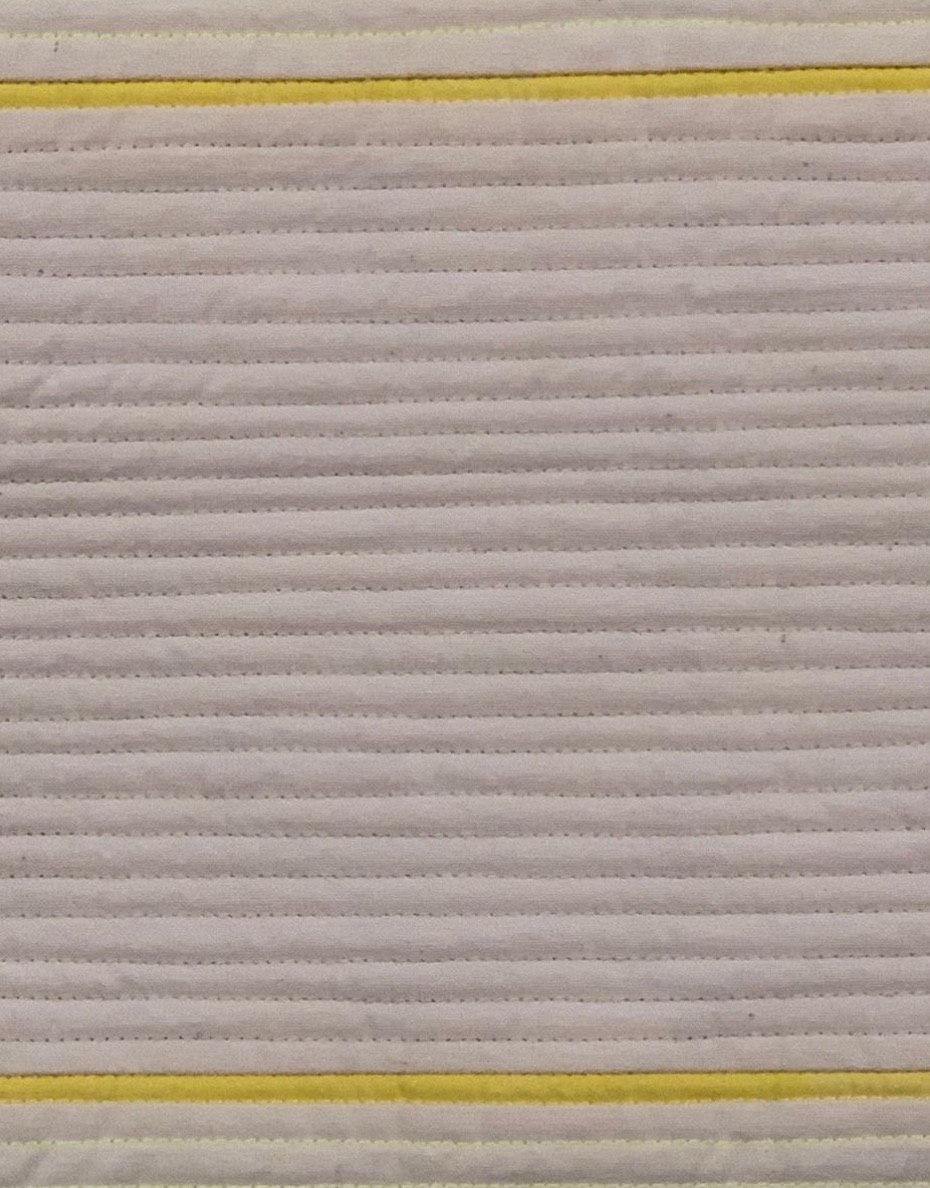 Carson Converse wanted to find some order and tranquility in this crazy world. This resulted in the creation of Passage, a "quiet" quilt that pushes the boundaries of minimalism. It is machine pieced and hand-dyed.