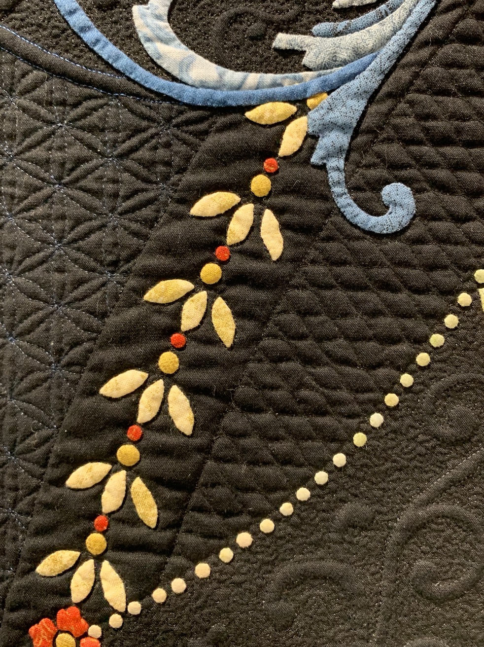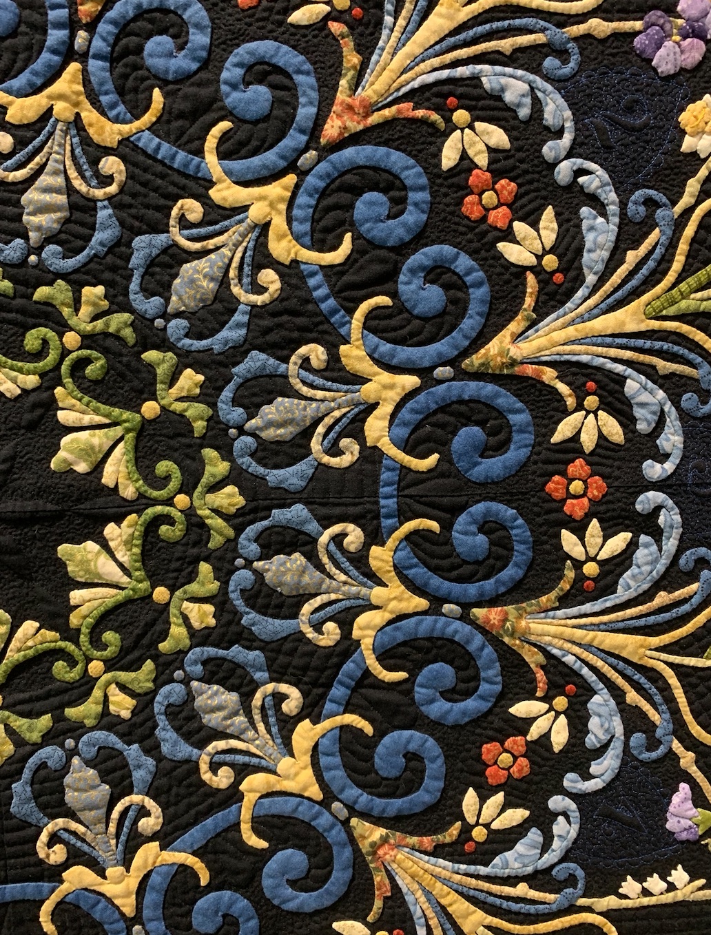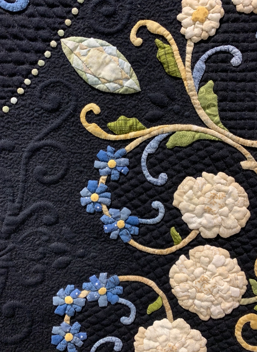 Kathy Wylie's quilt, For Such a Time as This, is based on time. Months are represented by flowers and birthstones of incredible beauty. Both the appliqué and quilting are stunning. Take a look at the details provided by Ricky's wonderful photographs.