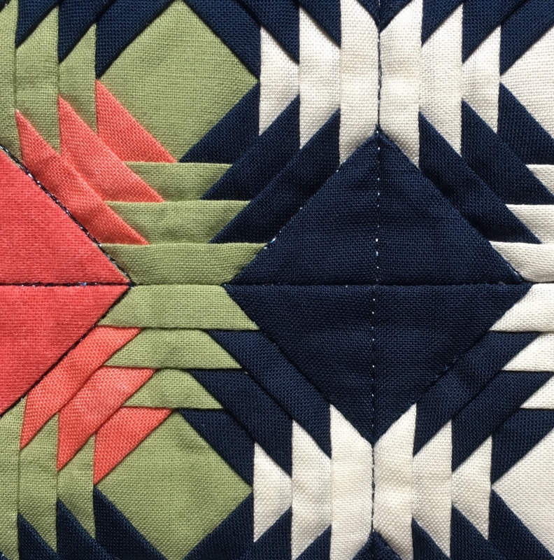 I have done my job as a quilter if this little quilt brings joy and warmth to my partner (#392) on the other side of the world....down under in Australia. I am naturally drawn to antique quilts, a love my Gram shared with me at an early age. And yet, at the same time, the aesthetic of modern quilts continually inspires me. So mixing the two are often a great combination for me. I like to call it modern traditional. Miniatures came to the forefront of my quilting when I discovered foundation piecing more than 20 years ago. I learned I could achieve such great precision rather easily. This miniature was especially enjoyable to create for my delightful partner Brenda! It’s been a pleasure getting to know and love her! We have SO much in common even beyond quilting. A great match and mate indeed! And what better block pattern to use ….? The pineapple is the international symbol of welcome and hospitality! I added a little “sparkle” using thread around the coral and green blocks! So befitting for my new friend and exceptional experience with the International Miniature Quilt Exchange, 2018!