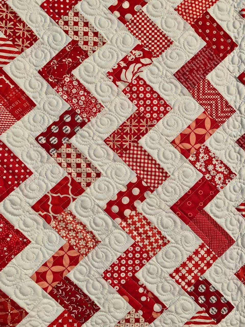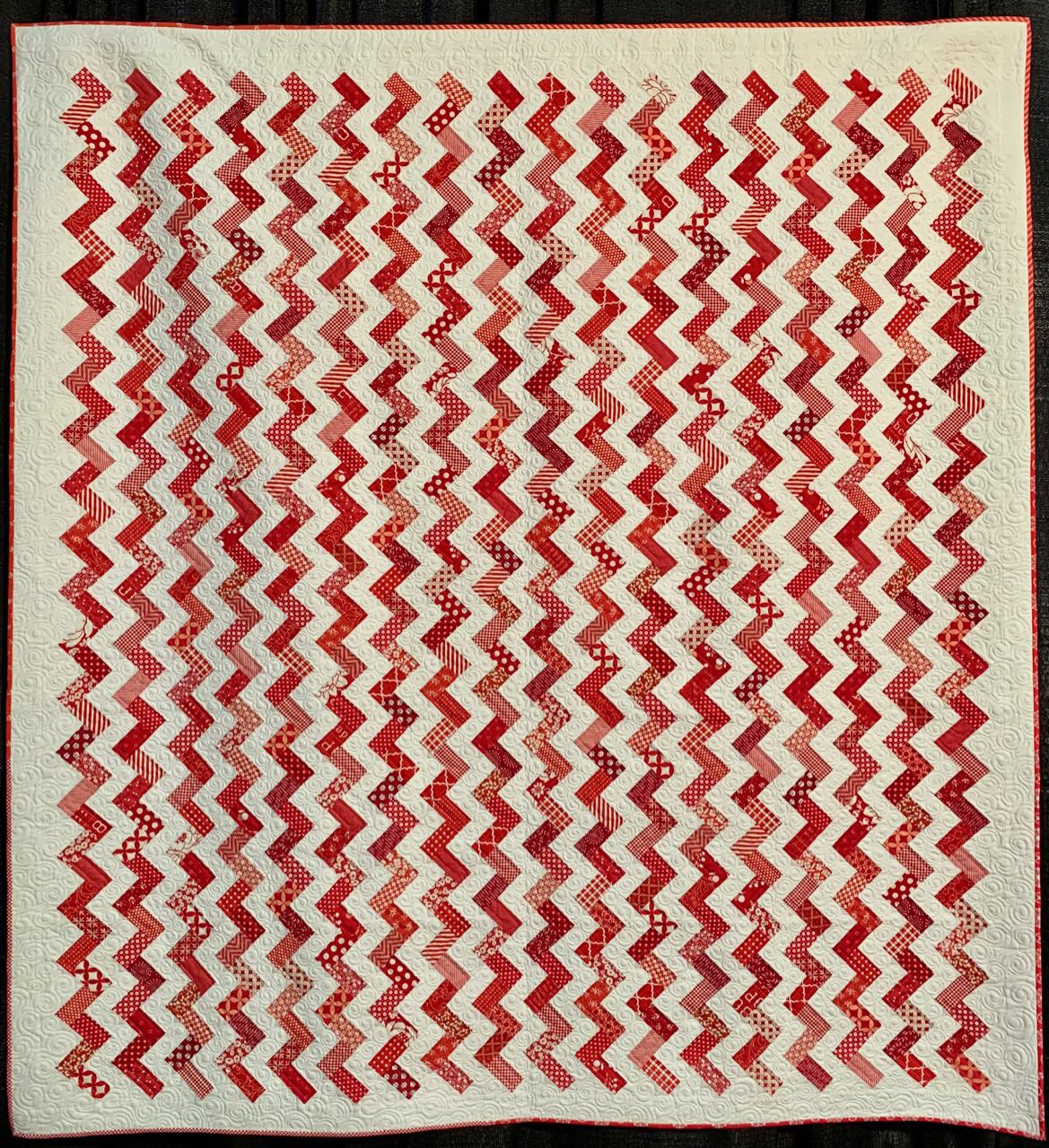 This was one of Capt'n John's favorite Red Quilts at Houston 2018. "I loved this quilt for several reasons. The simple but striking design really features the fabrics. When you walk up to it, you actually look at each fabric and the value changes, not just the design. Then using a circular quilting on a pattern of sharp edges was a fun approach. Everything worked for me and I enjoyed just standing there for awhile."