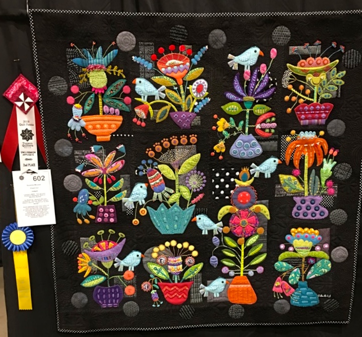Being that I have appliqué envy, I was especially WOW'd by some of the appliqué quilts. I am encouraged to drag out one of my "elderly" projects, which is a Kim McClean appliqué quilt. Did you notice that I did not call it a UFO...sounds so disrespectful...we must respect our elders!!!