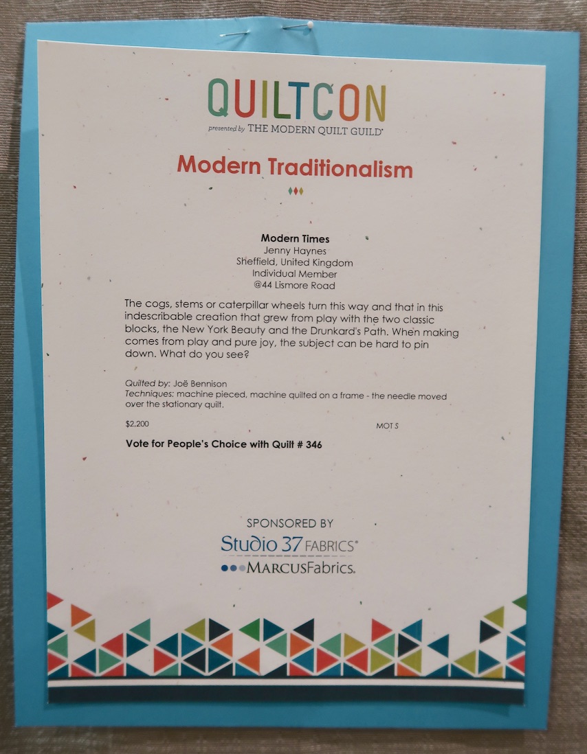 Modern Times won 3rd Place Modern Traditionalism at QuiltCon 2019.