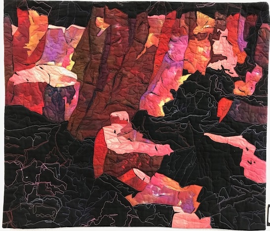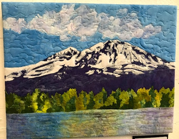 Anna and G On The Road is home sweet home. Although traveling and visiting quilters, quilt shops, and quilt shows is such a blessing, there really is no place like home. I can almost hear my Ruby slippers clicking together, lol. One of the first things I had to indulge myself with was a trip to the Stitchin' Post in Sisters, Oregon. There is nothing more grounding than visiting your local quilt shop. I was especially taken by the display of quilts that were in the Twigs Gallery. One of the artists was Sheila Finzer, a Central Oregon Art Quilter, and the display of her quilts hung in the gallery was reflective of our lives here in Central Oregon. I only wish our little camper was large enough to hang these art pieces...then, I could have a bit of home on the road!