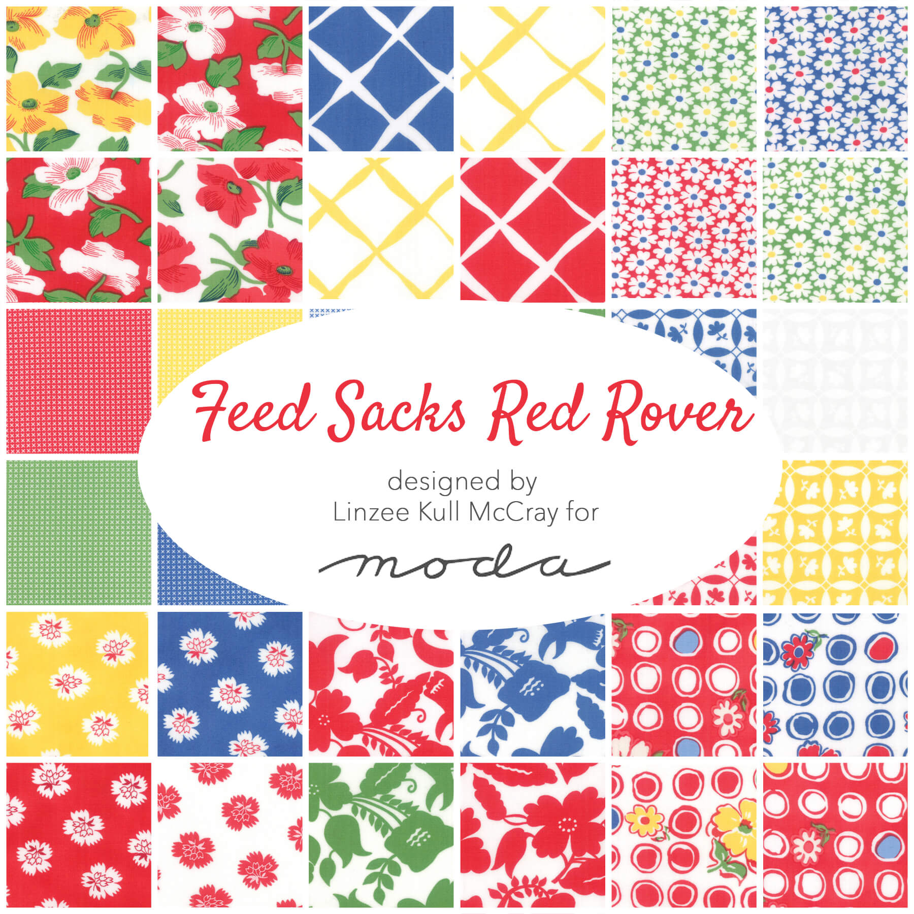 Red Rover is based on actual feed sack prints, the very fabrics that children may have worn as they played under the trees. The bright, clear colors of Red Rover work well all together and in two- and three-color combinations, as well—blue and yellow; blue, green and yellow; and red and green.