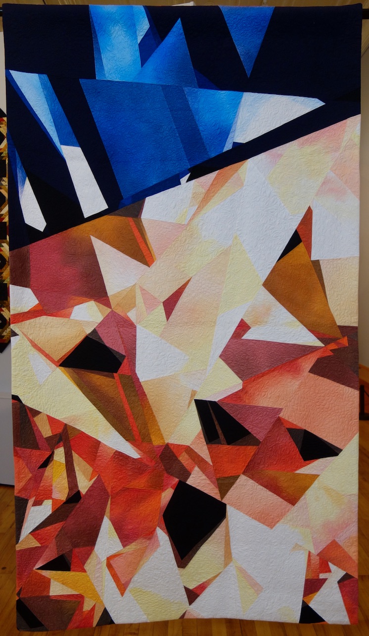MJ writes, "Historic Willett Distillery (Bardstown, KY) inspired this piece. Using the amber, orange, and cherry hues of my favorite cocktail, the blend of design elements became Old Fashioned New."