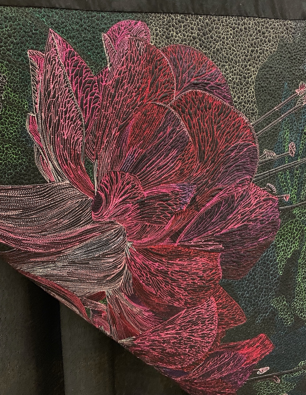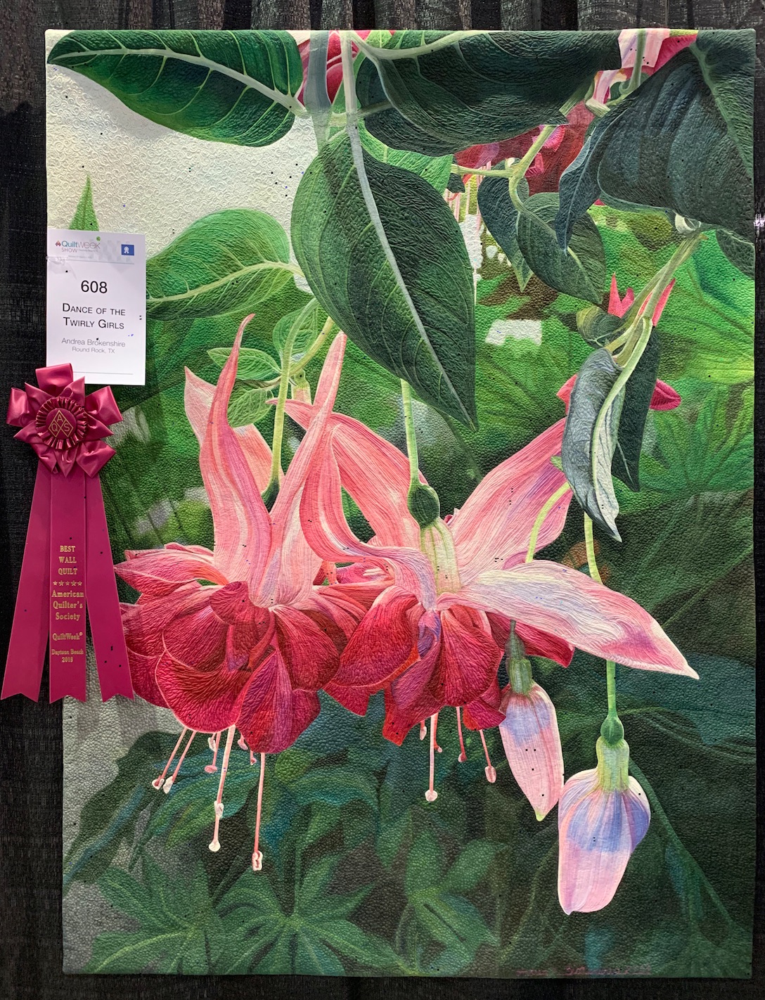 Dance of the Twirly Girls just won Best Wall Quilt at AQS Paducah 2019 and Ricky stopped by to give Andrea a hug and take some photos. This time we get to see the amazing quilting from the back.