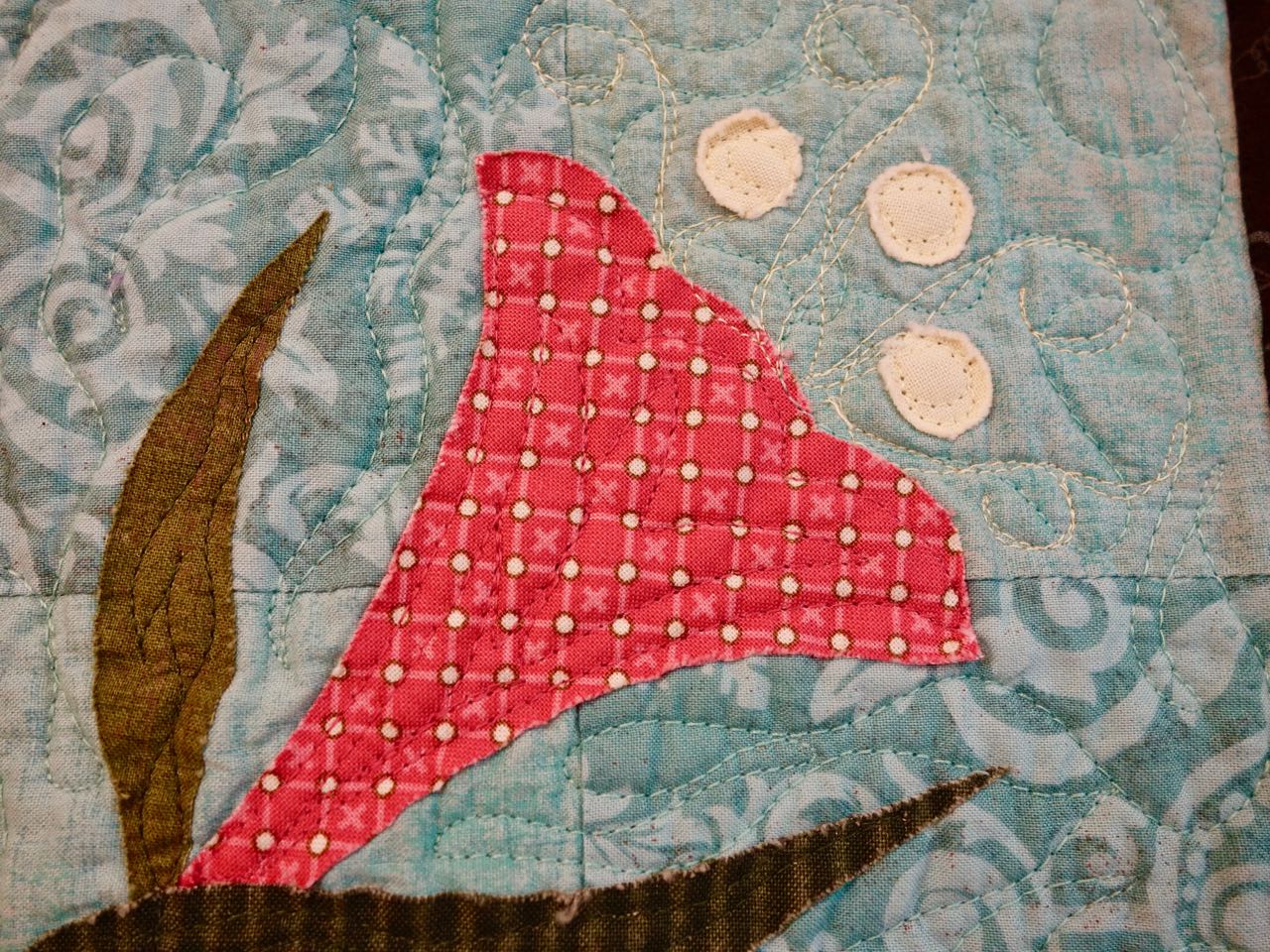 Heidi just loved the way the flowers were "bouncing" around on this quilt's background, which gave way to the name Dancing Tulips. Be sure to scroll down for the close-ups.