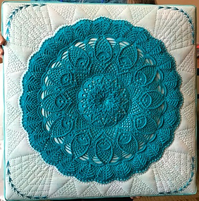 And then, she incorporated the doily making with her quilting! Aren't they amazing! I continue to be amazed by quilters and their ability to up the bar.