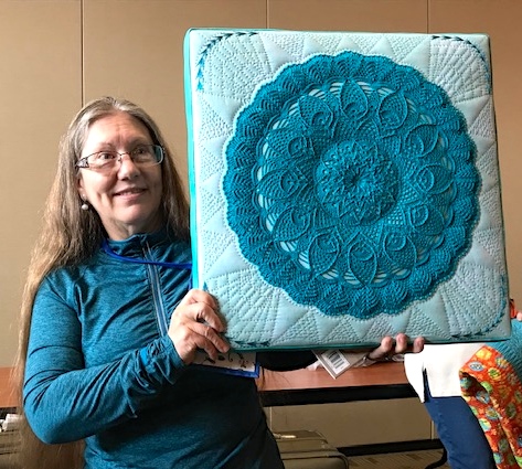 I had the pleasure last week of being a guest speaker at the Mountain Meadow Quilt Guild...the topic...My Quilting Life (you can check out Quilt Roadies for my quilts). But, here's the thing...I may have been the guest speaker, but I was wowed by the show 'n tell! Plus, I actually saw something I have never seen before! Doilies...yeah you heard me, doilies! But, not what you might remember from grandma's house.