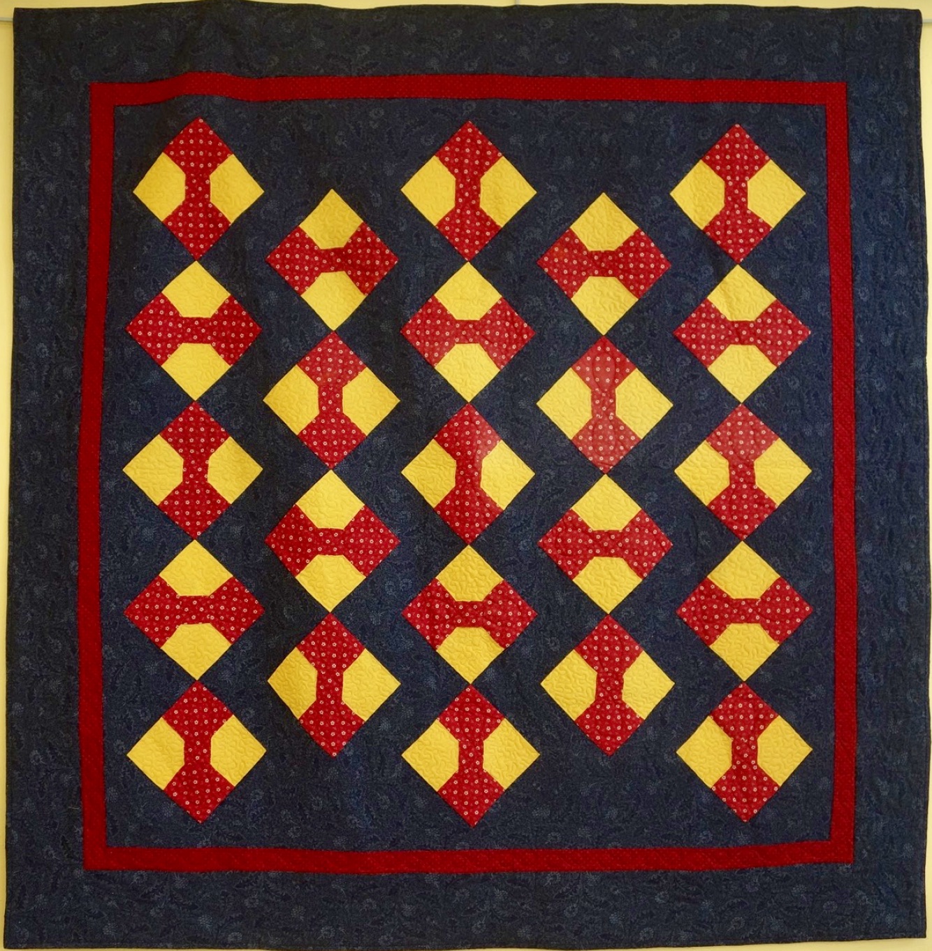 Heidi learned from Darlene Zimmerman how to take things you've found and put them to good use. Heidi found these bowtie blocks (which featured her favorite Iowa State colors) and put them together in this quilt, Bowtie.
