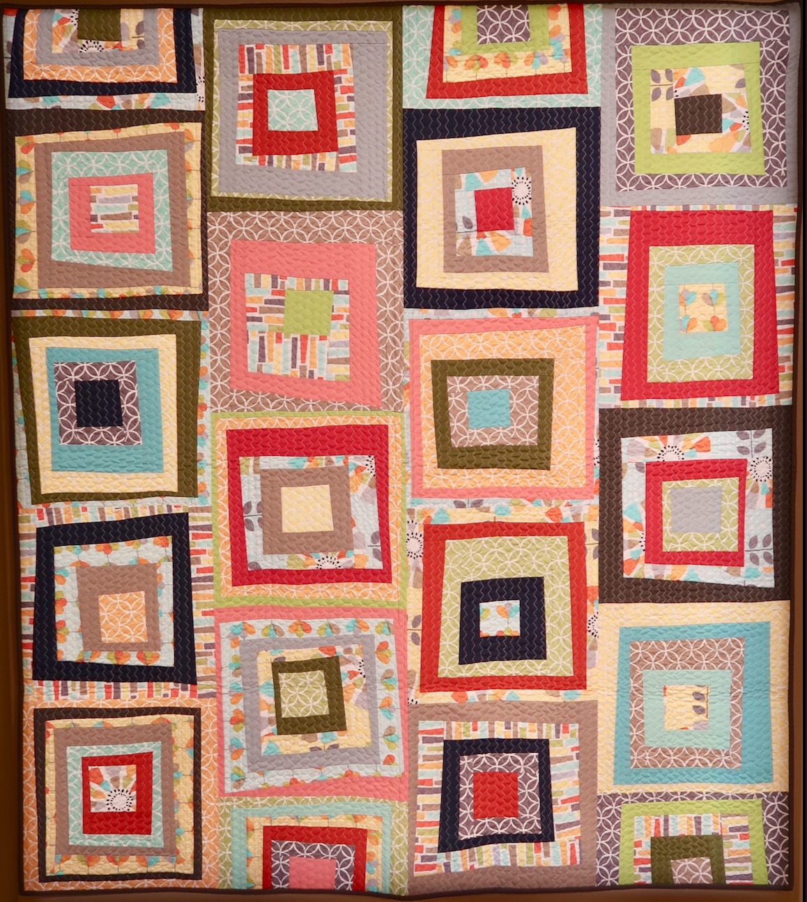 This is Christa's first class sample, Modern Logs, which she created to teach students how to make a Modern quilt. It is based on a traditional log cabin design.
