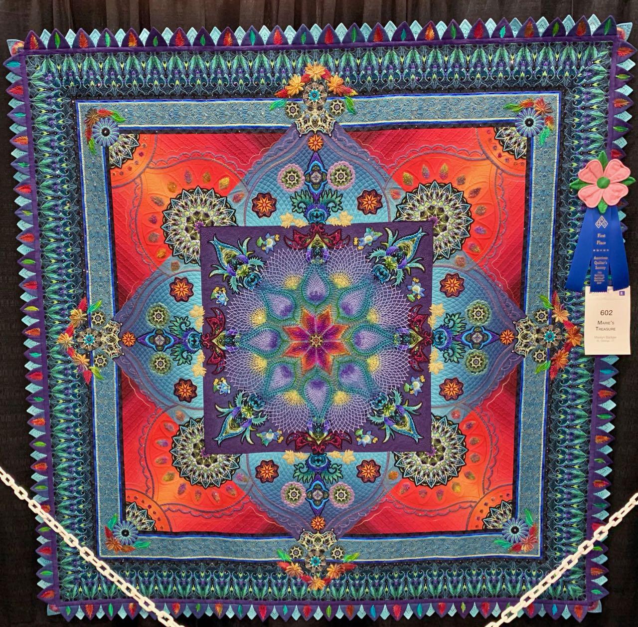 We love how making an amazing border was not enough. She then added stitching and more crystals. Take a look and enjoy Marie's Treasure by Marilyn Badger.