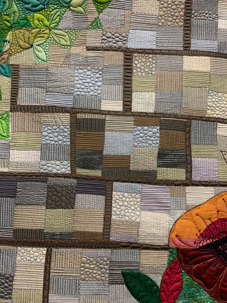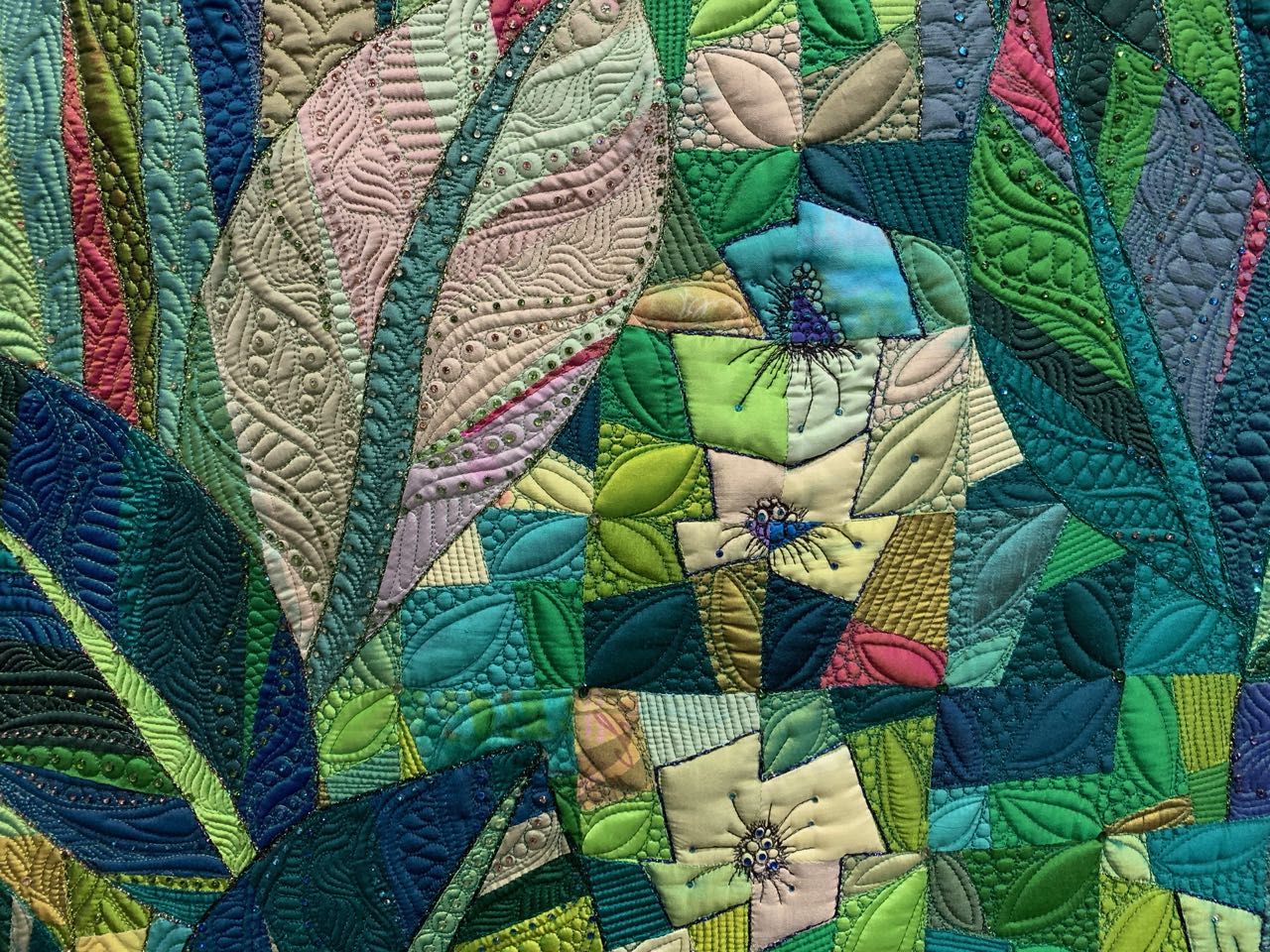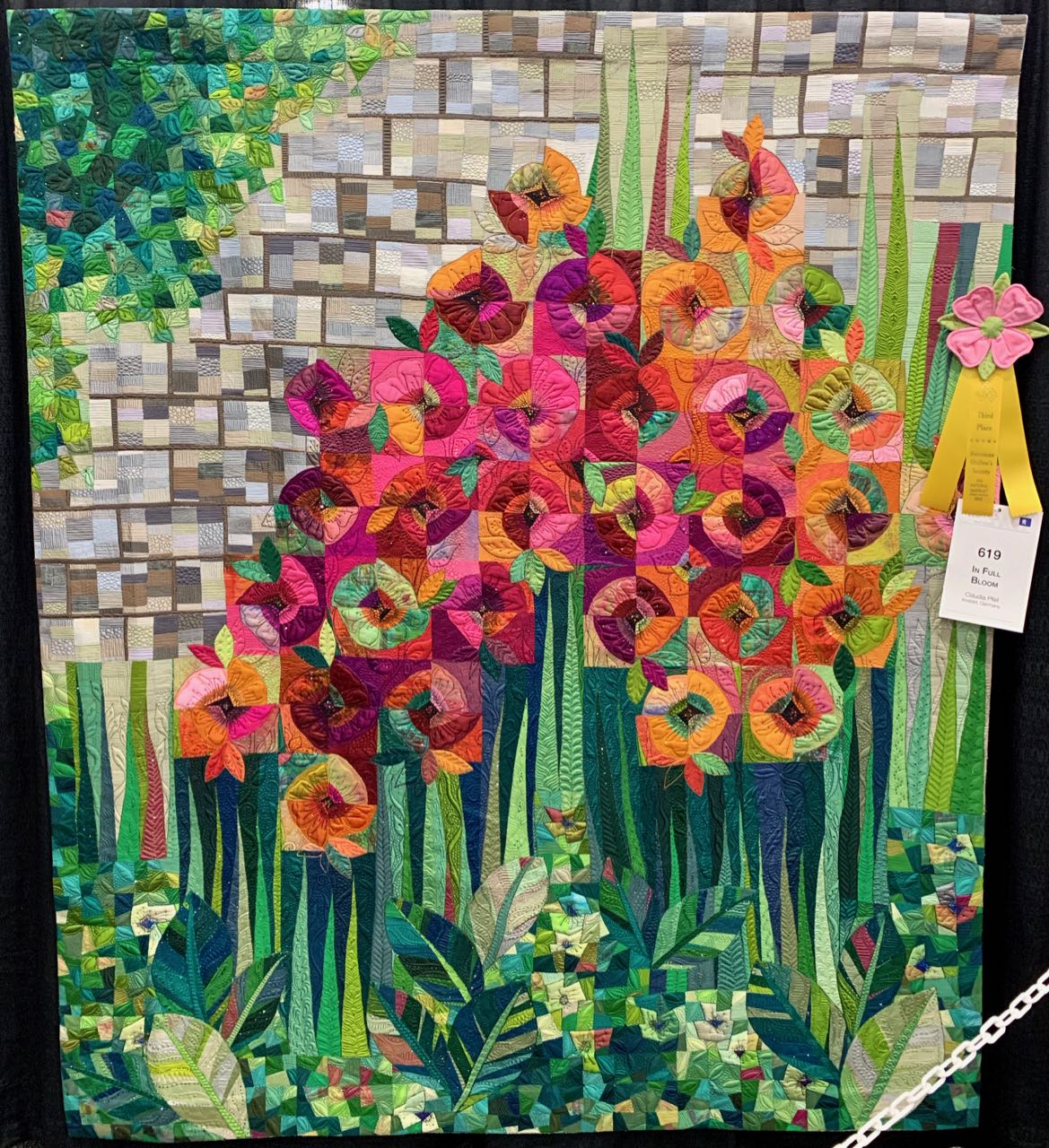 We had a great time when Claudia Pfeil came from Germany to tape her show this April. Her quilting is fantastic, her energy contagious, and she makes us laugh. Her quilt, In Full Bloom (69" x 83"), caught our eye right away as we walked down the aisle. The top three winners in the Movable Machine Quilted Category were all amazing. Watch the next two newsletters for 2nd and 1st place. After seeing Claudia's quilt you'll realize the level of excellence in all three.