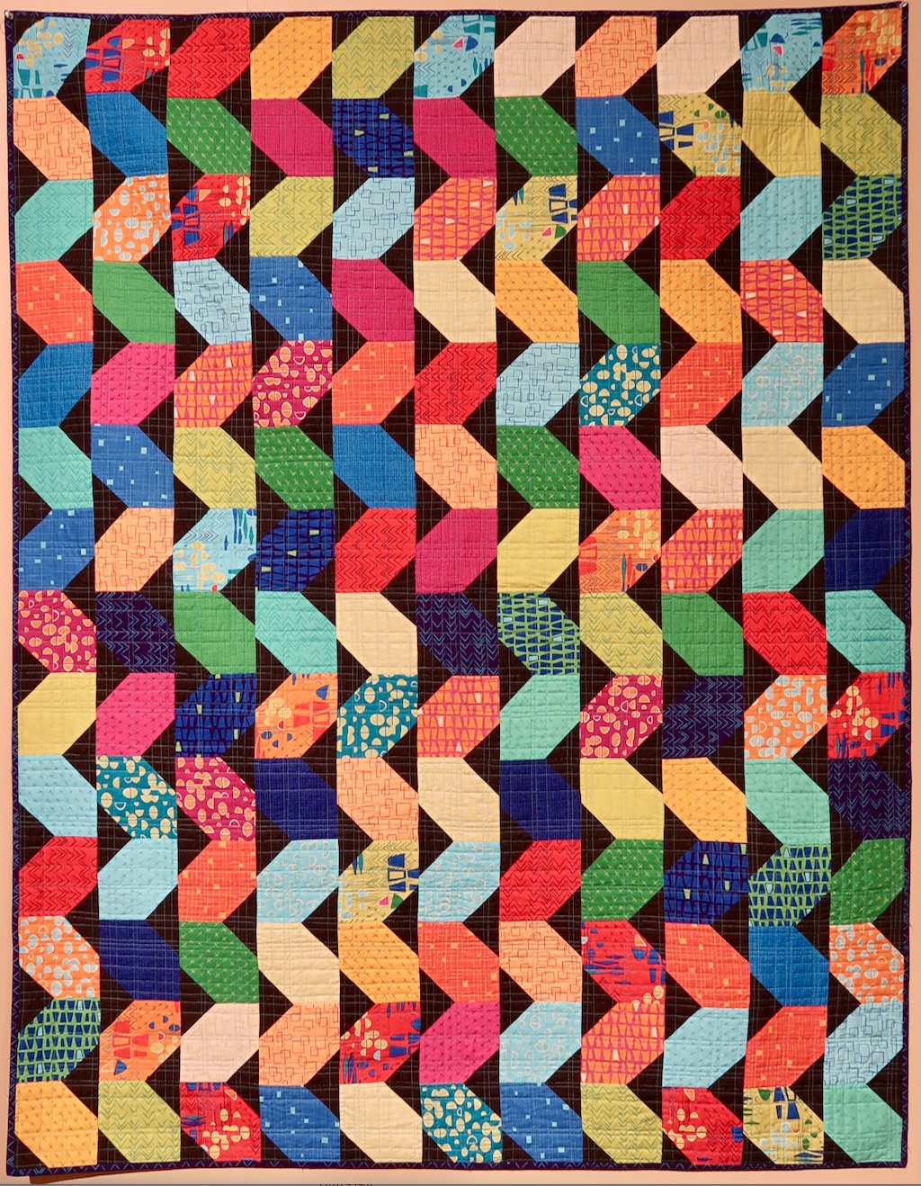 Squiggles is a simple stich-and-flip quilt made from a traditional pattern and Charm Packs.