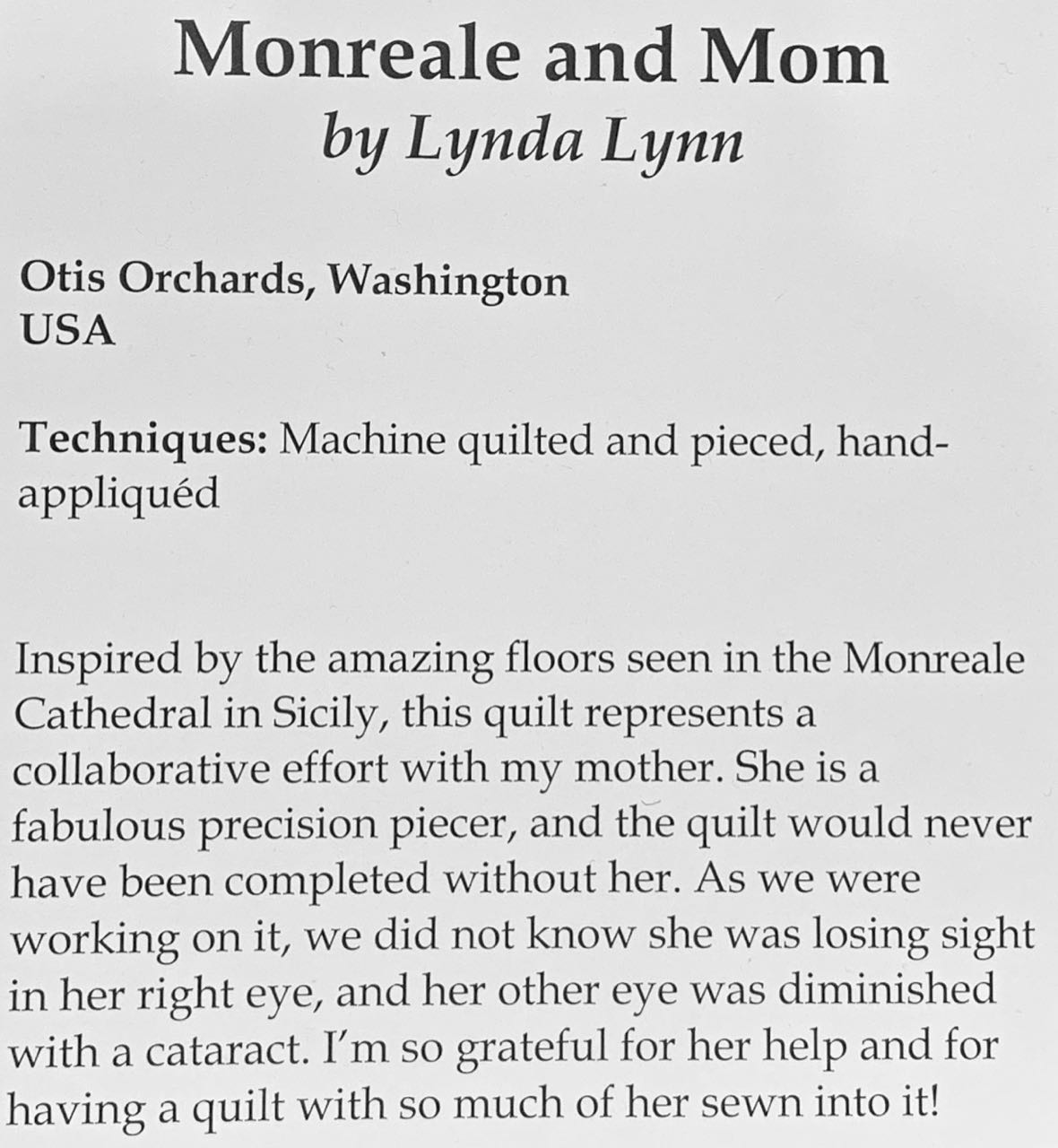 Quilt Market is just for vendors and buyers to meet up and plan purchases for the next 6 months. At Market, Quilts Inc includes prize winning quilts from past shows. Alex works during quilt shows and hadn't seen this quilt. She got a chance to take it in and we decided to show you it again. The story is heartwarming and the quilt is amazing. Both the piecing and the quilting are outstanding.